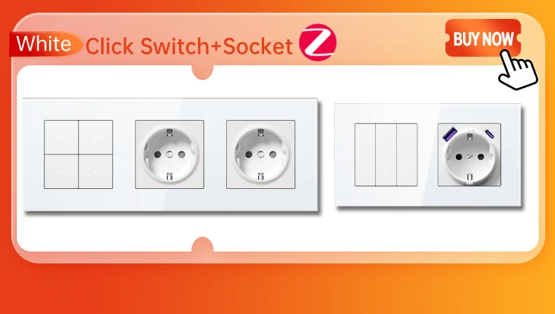BSEED ZigBee Click Switches Series Wall Smart Click Light Switches Yellow Backlight Glass Frame Tuya APP Switch EU Standard