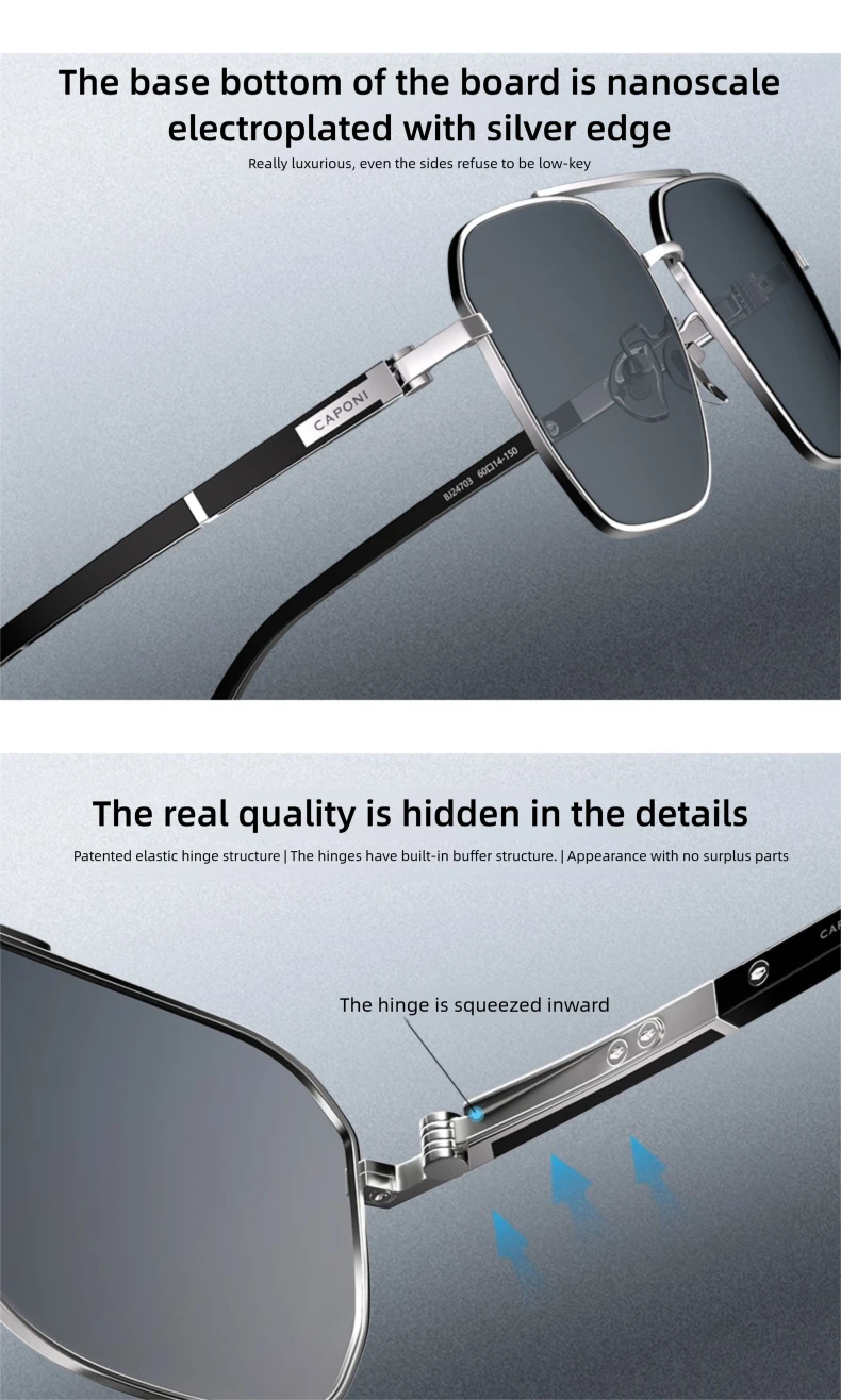 CAPONI Men’s Sunglasses Double Bridge Polarized Shade High Quality Acetate Sun Glasses For Fishing Driving BS24703