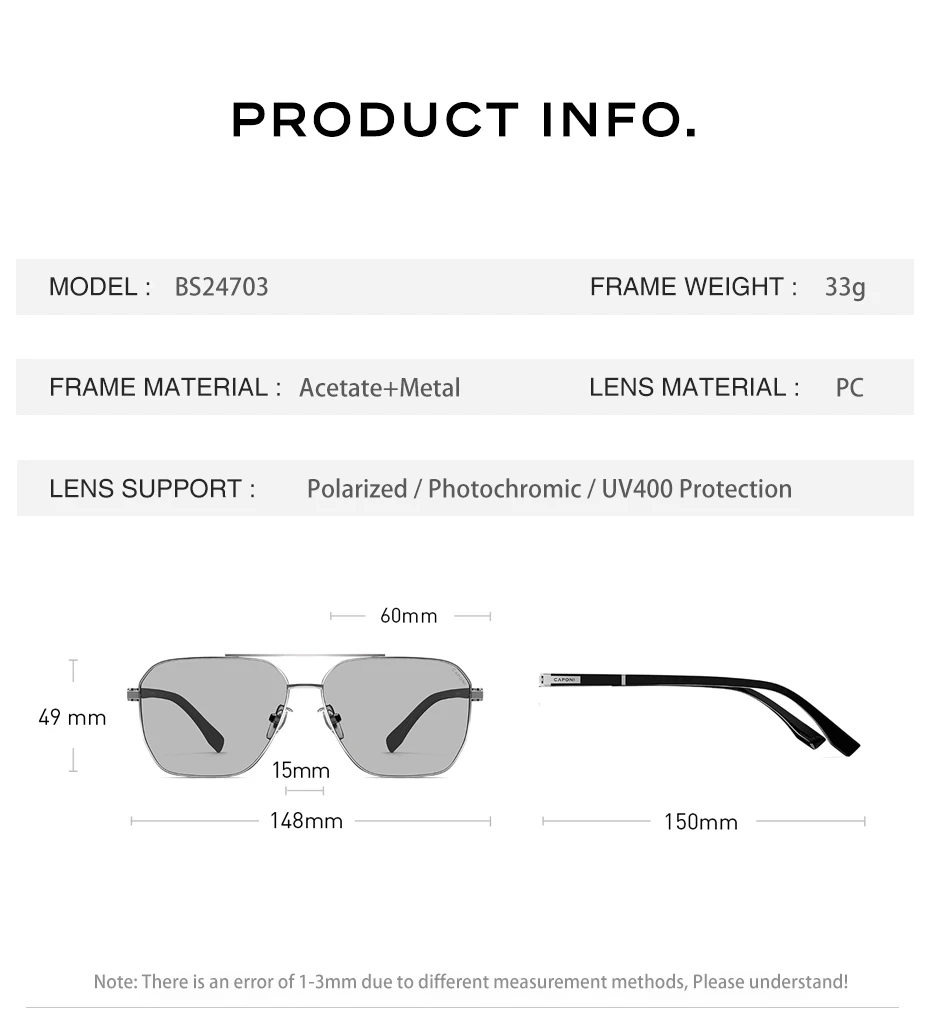 • Lenses Optical Attribute: polarized,Photochromic,Anti-reflective,UV400