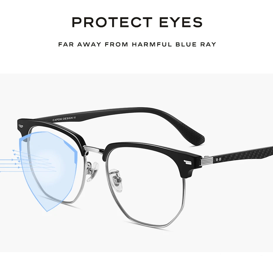 CAPONI Prescription Men Glasses Frame Titanium Retro Vintage Business Reading Glasses Myopia Computer Anti Blue Ray Frame PJ7518