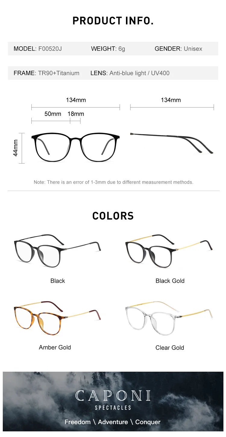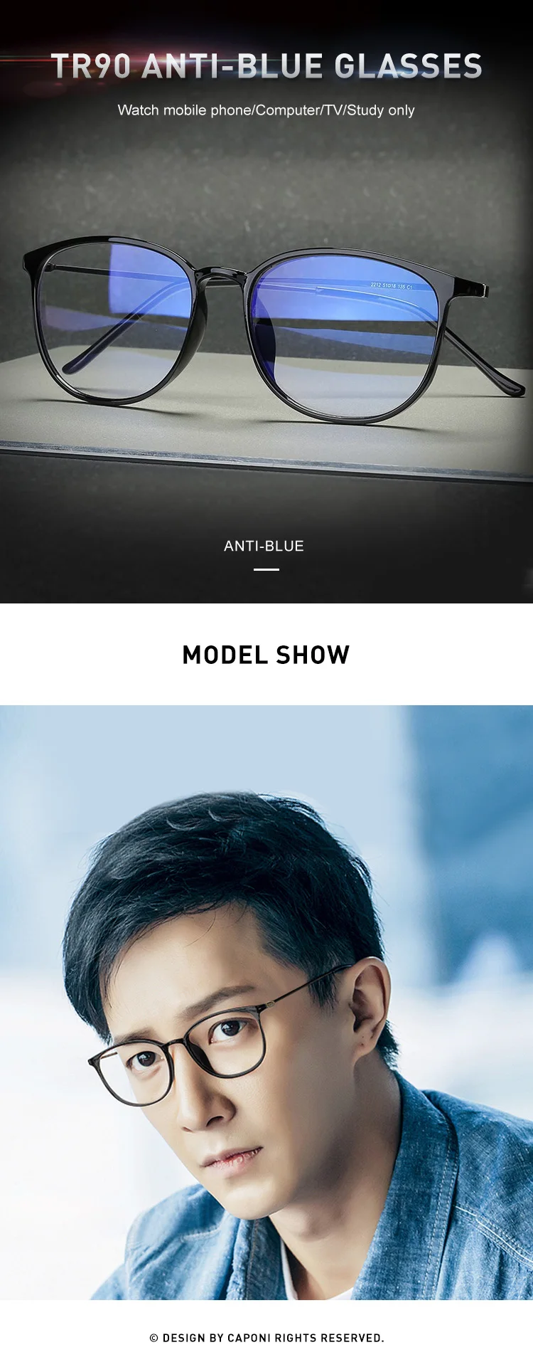 CAPONI Prescription Men Glasses TR-90 Titanium Light Myopia Glasses Progressive Anti Blue Ray Reading Round Eyes Glasses PJ520