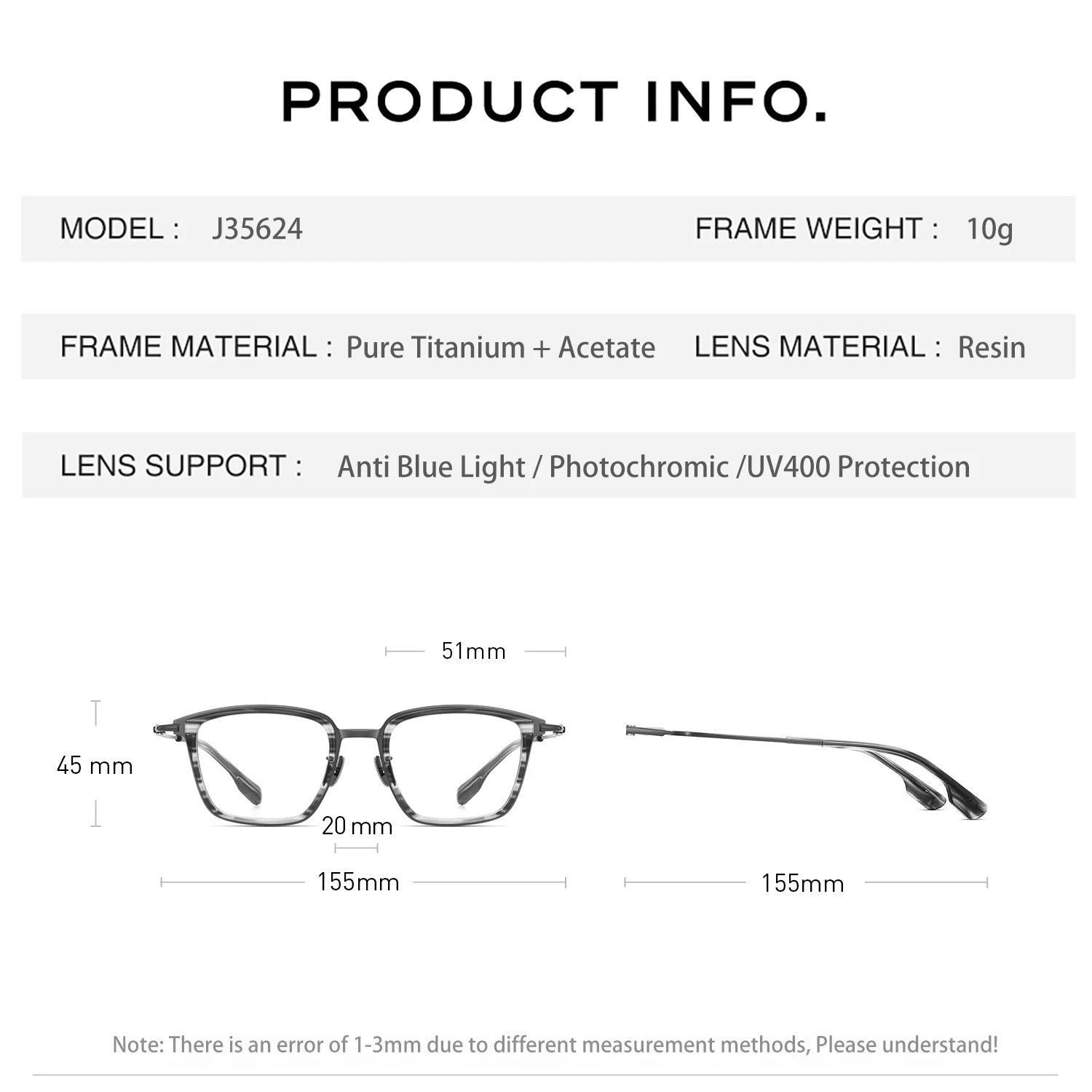 CAPONI Retro Prescription Men Glasses Classic Pure Tianium Acetate Myopia Glasses Progressive Customized Reading Glasses PJ35624