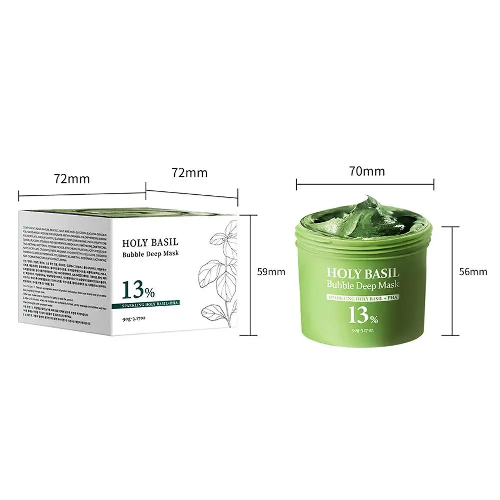 Carbonic Acid Holy Basil Bubble Mud Mask Exfoliating Cleansing Remove Blackhead Shrink Pore Oil Control Soothe The Skin 90g