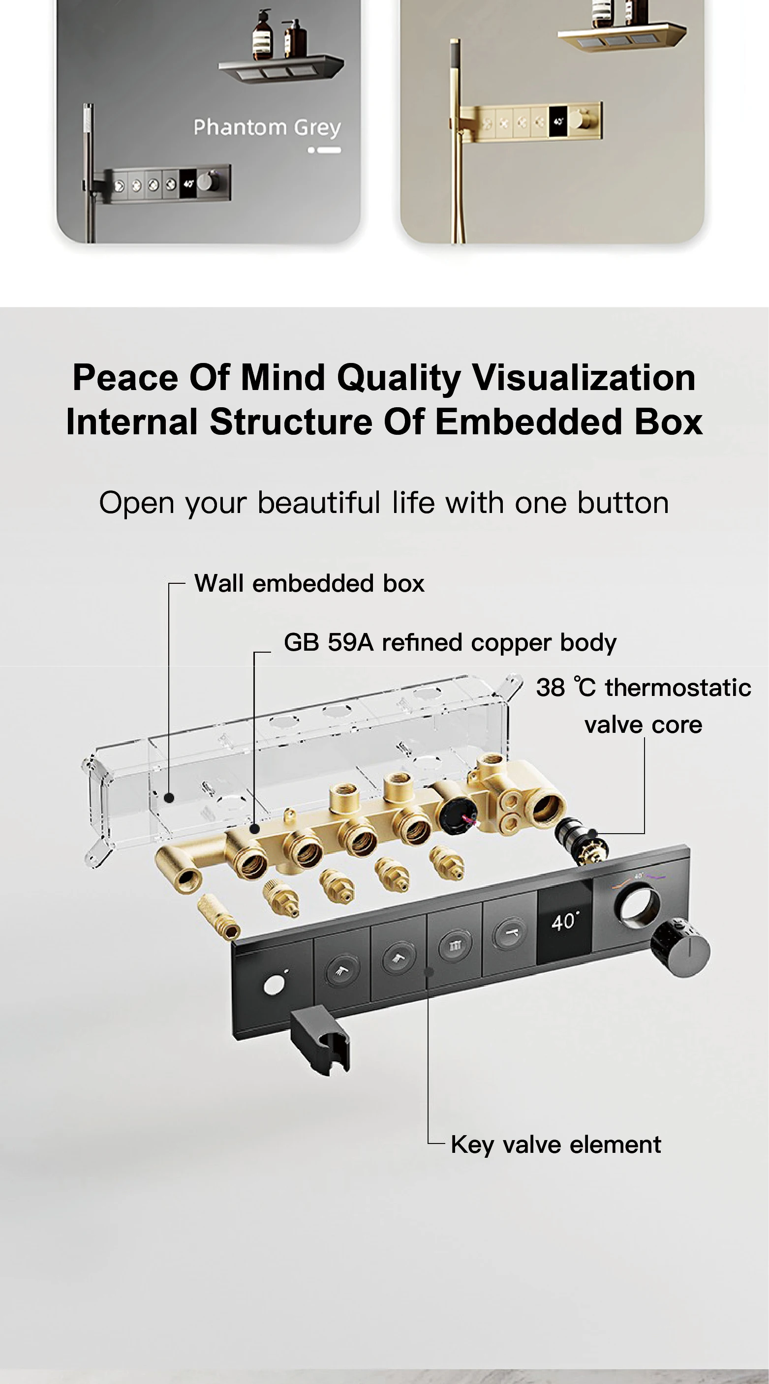 Ceiling Mounted LED Digital Display Thermostatic Shower System.Embedded waterfall style brass bathroom mixer for hot&cold water