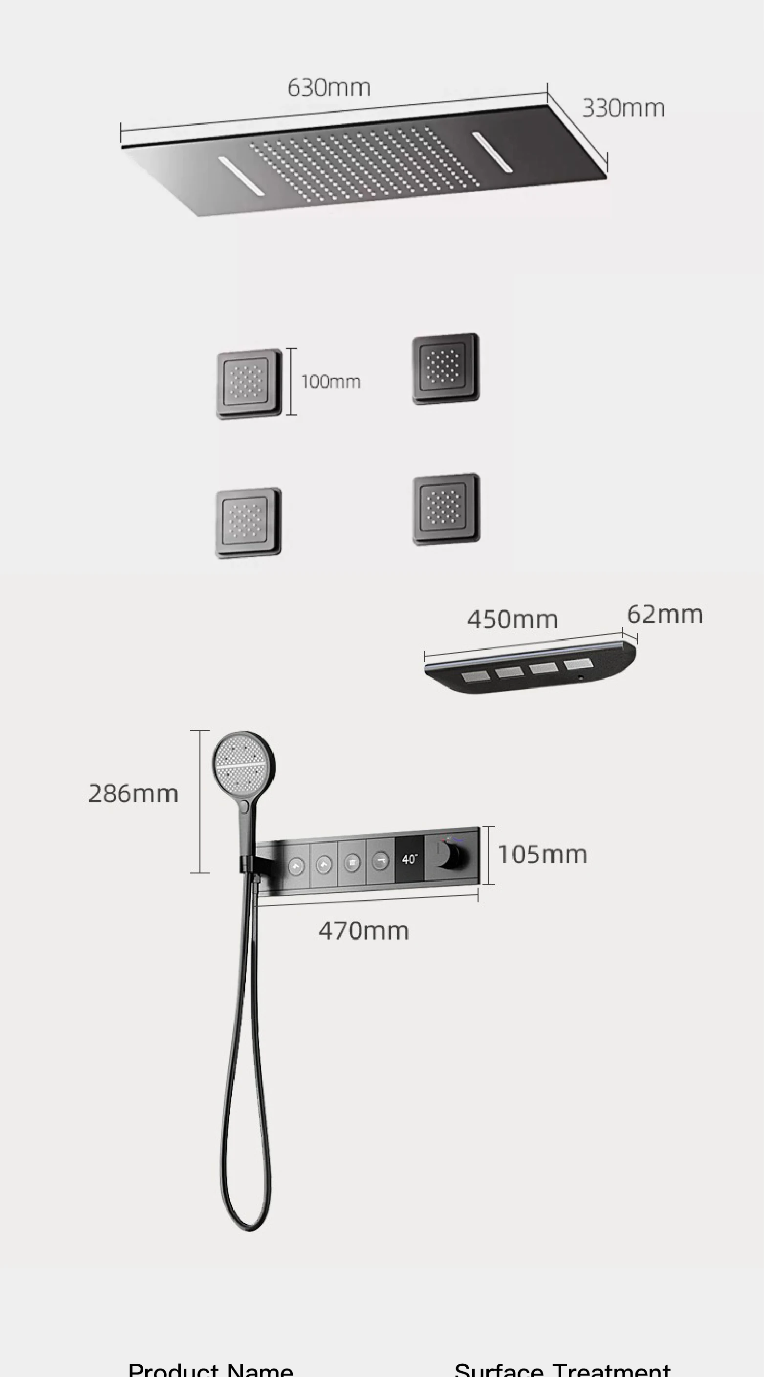 - Shower shape: SQUARE