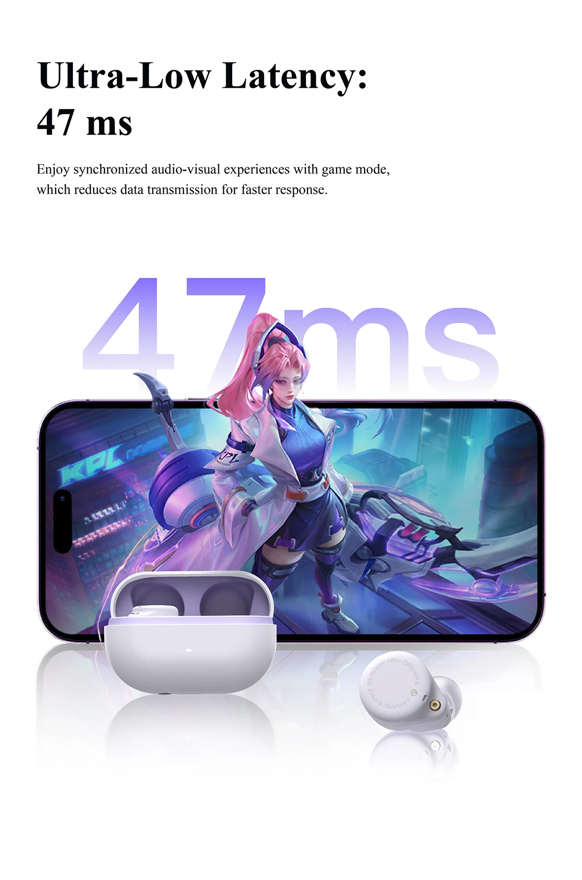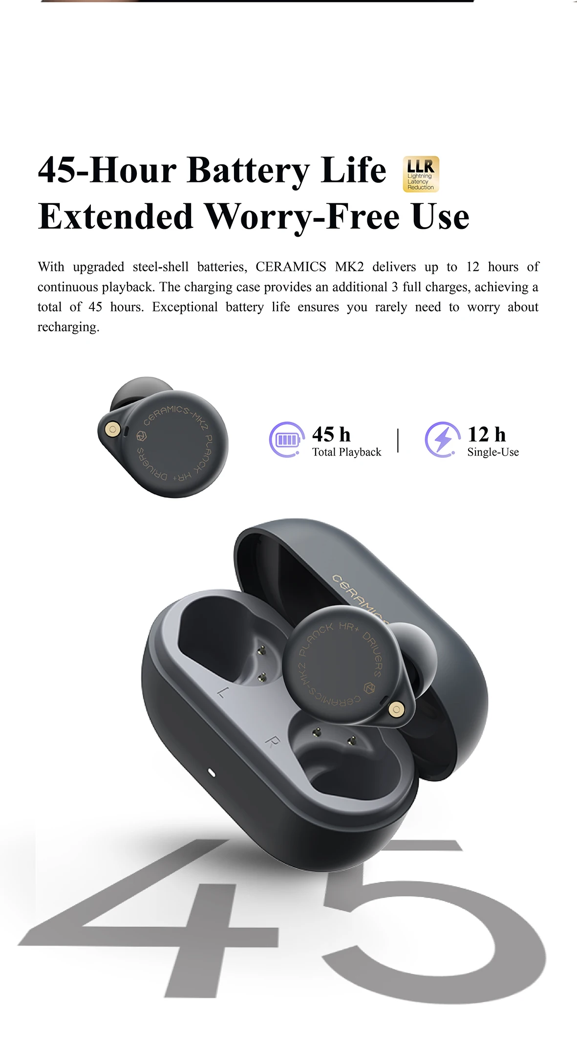 45 Hour Battery, All-Day Comfort & 47ms Game Mode – CERAMICS MK2 is equipped with a premium steel-shell battery. Single charging provides 12 hours playback that powers you through the day. No battery anxiety. Furthermore, refined through ergonomic insights from millions of users, it significantly reduces ear fatigue for lasting comfort. The game mode offers 47ms latency for a faster, more responsive audio advantage.