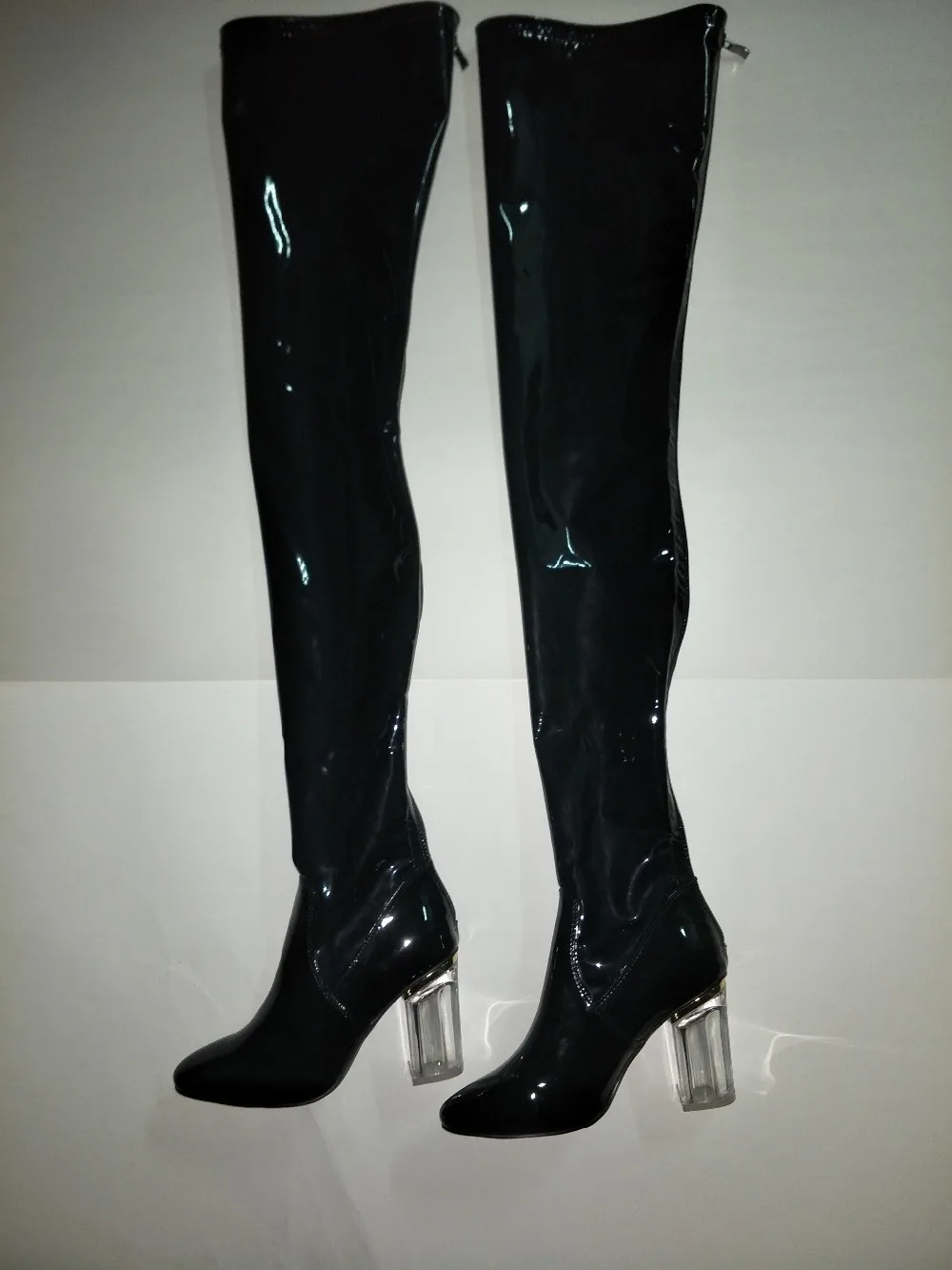 Clear Crystal High Heel Boots Patent Leather Over The Knee Boots Black Red Latex Sexy Slim Thigh High Party Long Botas