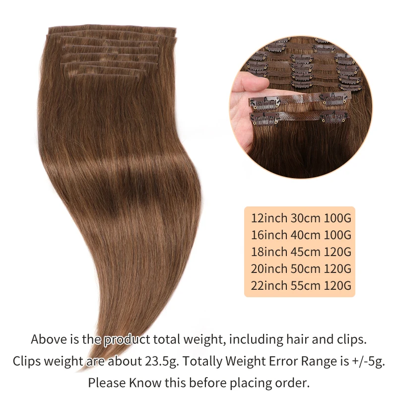 Clip in Hair Extensions 100% Real Human Hair, 12-24Inch 100-120g Clip in Extensions for Women, Invisible Straight Hair