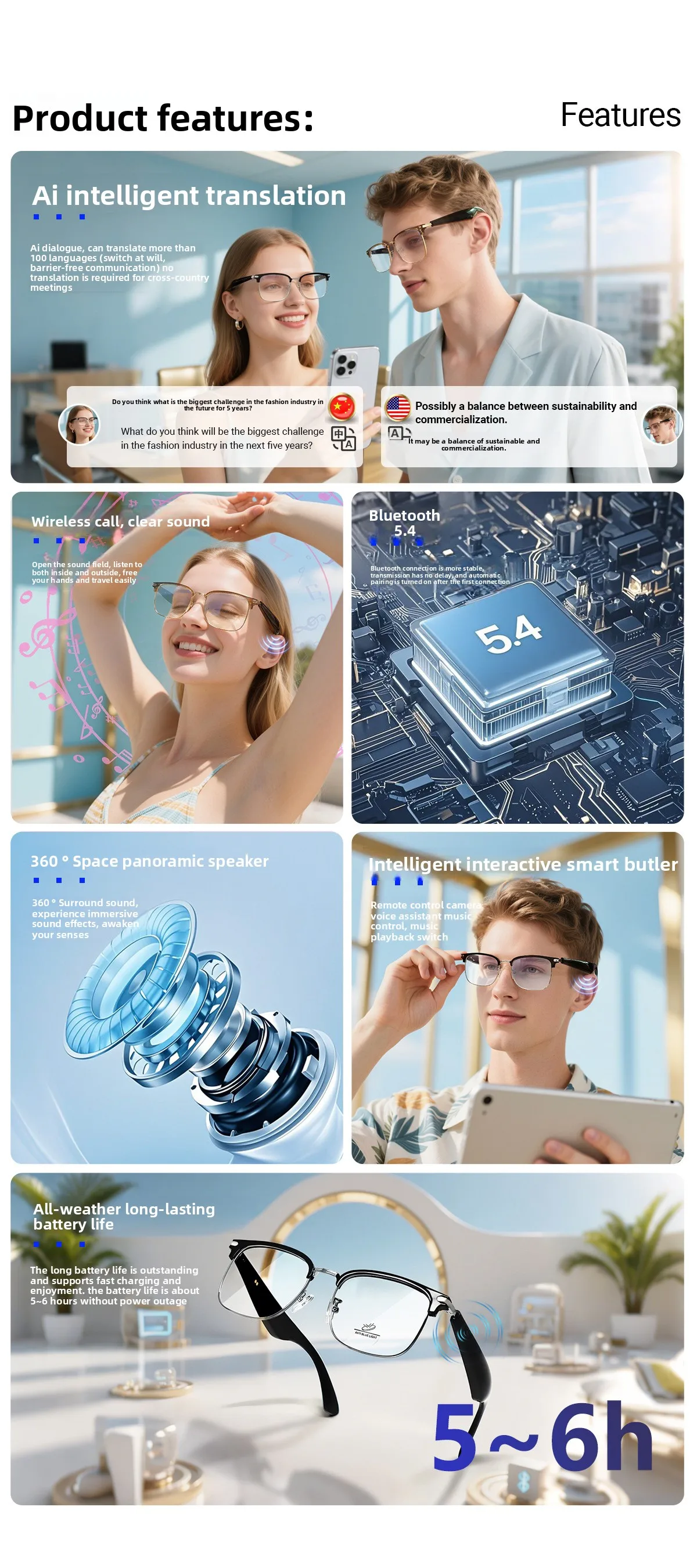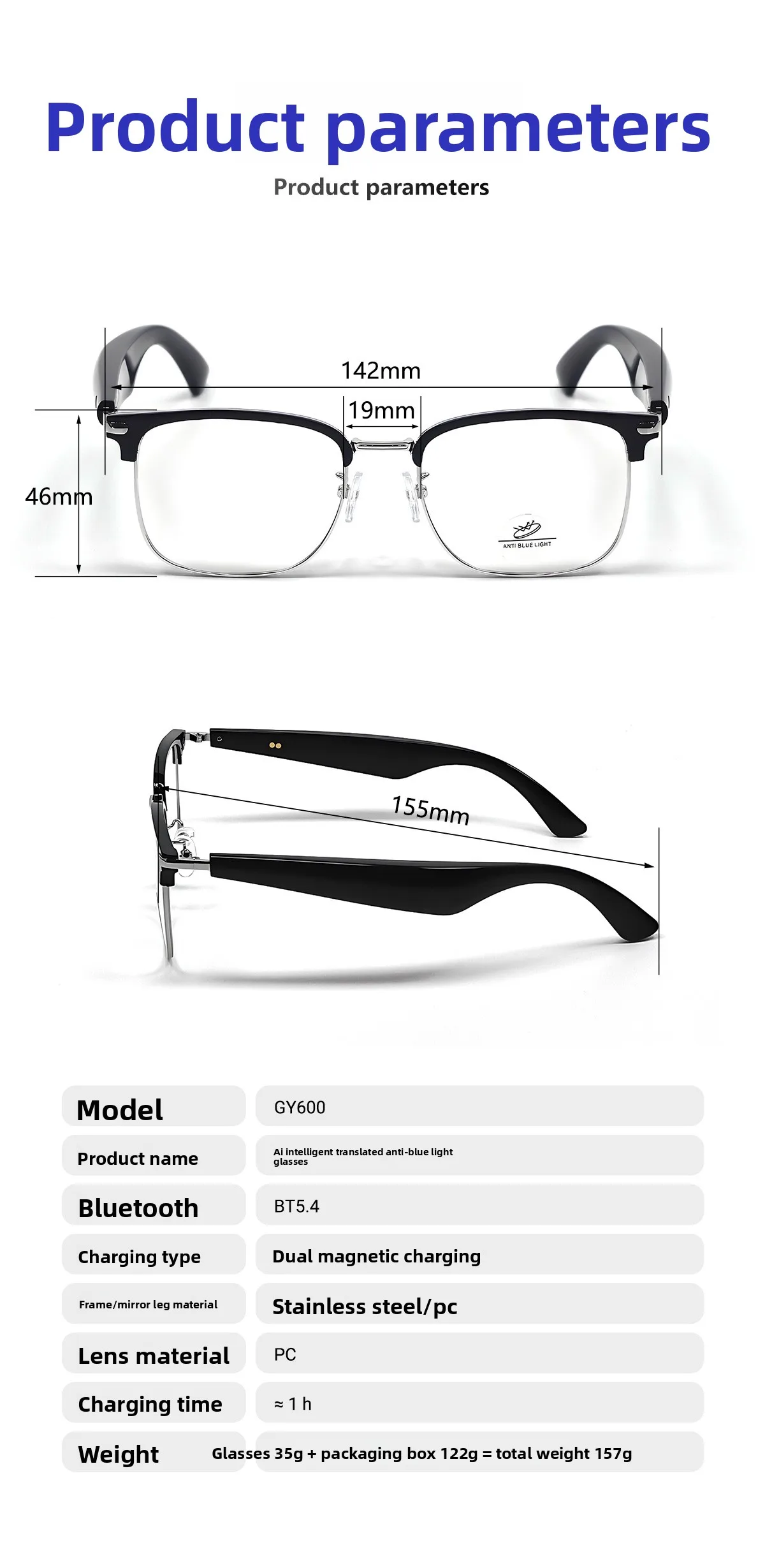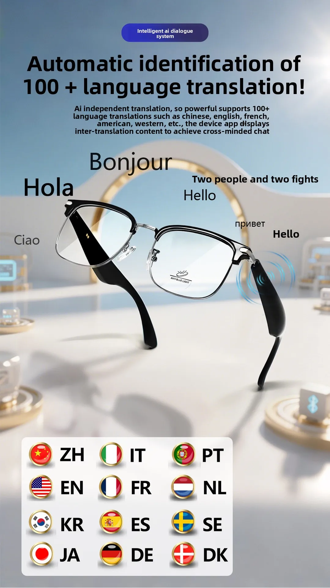 CLLOIO AI Bluetooth Translatior Prescription Glasses Over 100 Languages Real-time Translation Anti Blue Light Reading Eyeglasses