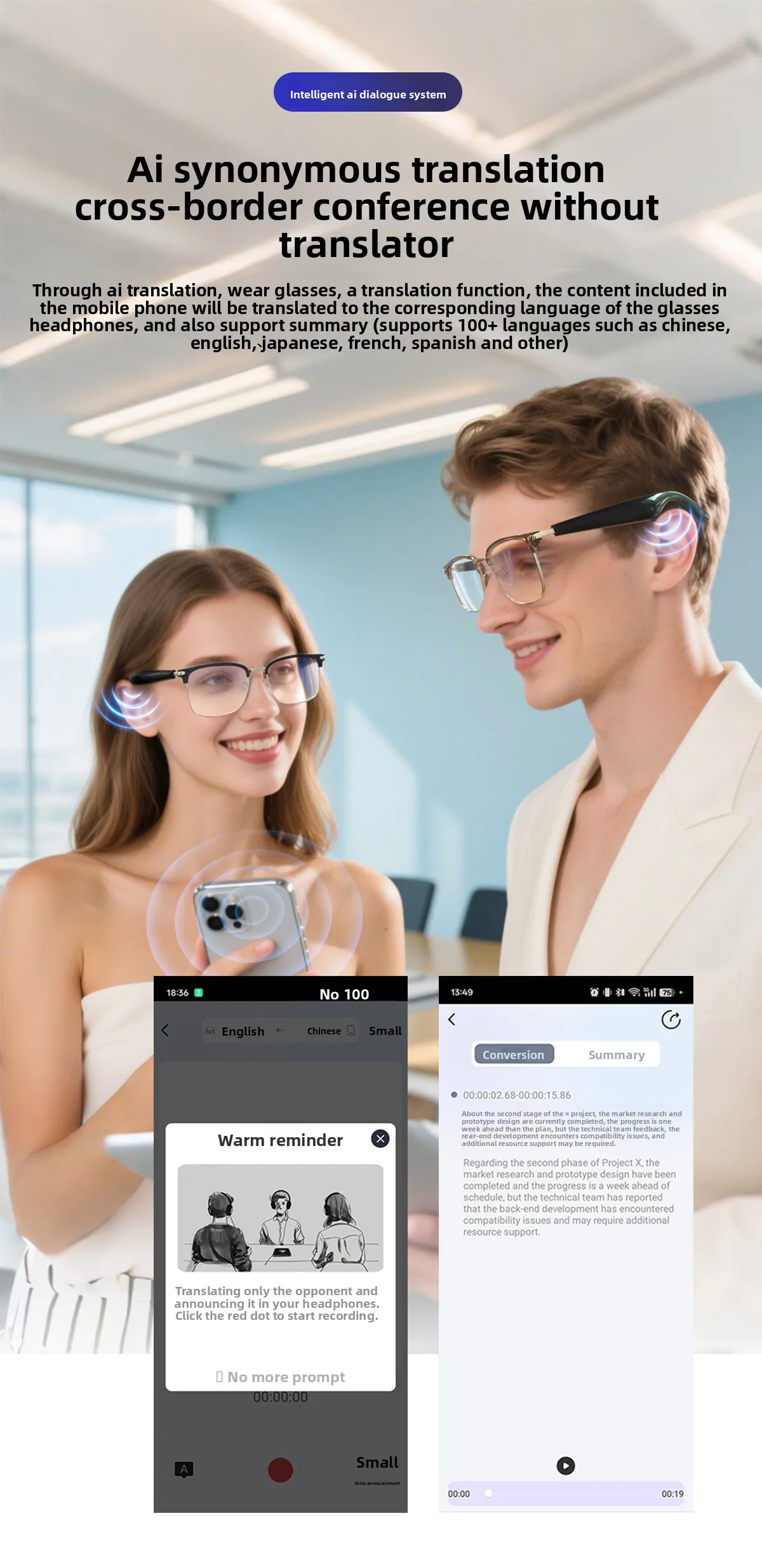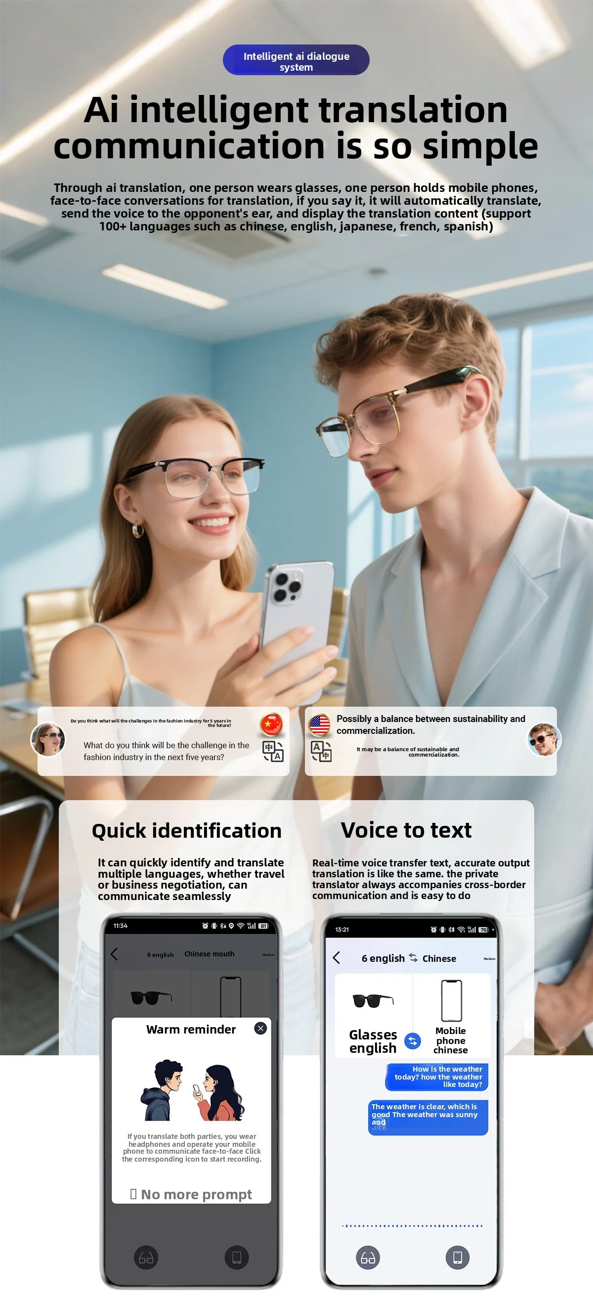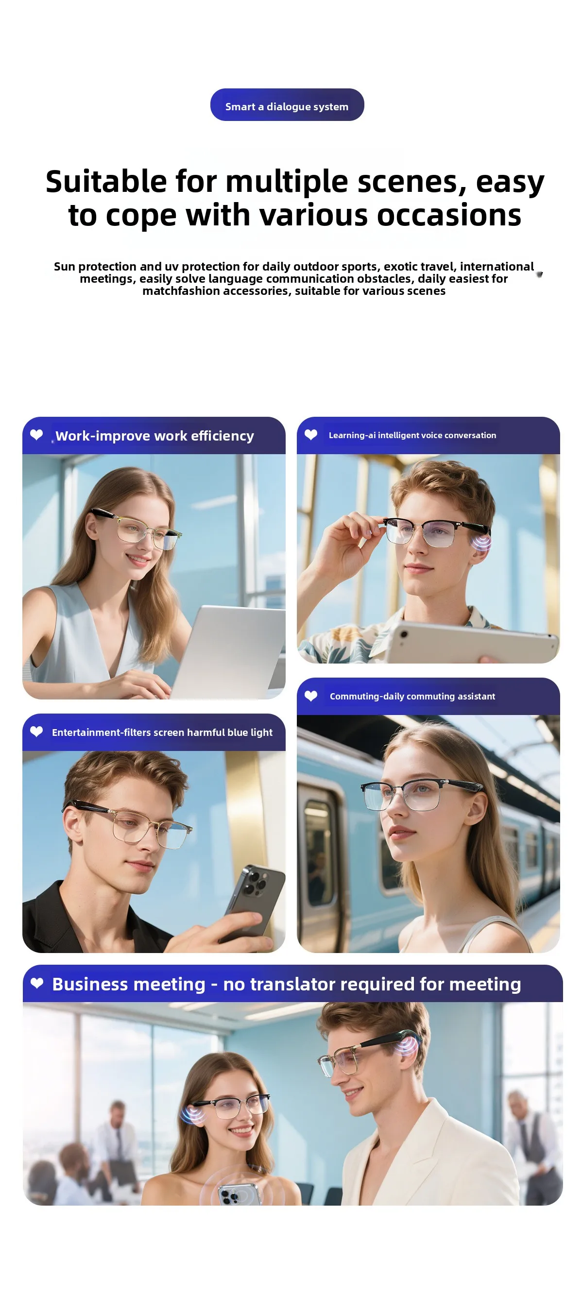 CLLOIO AI Bluetooth Translatior Prescription Glasses Over 100 Languages Real-time Translation Anti Blue Light Reading Eyeglasses