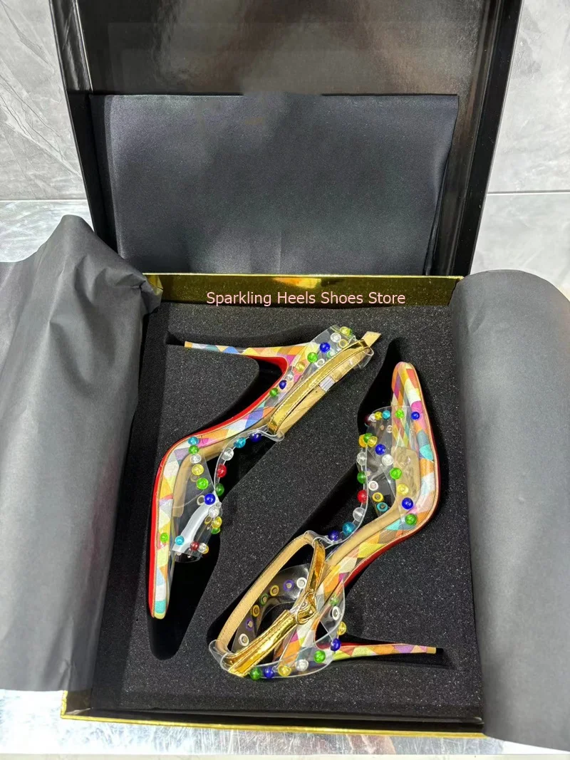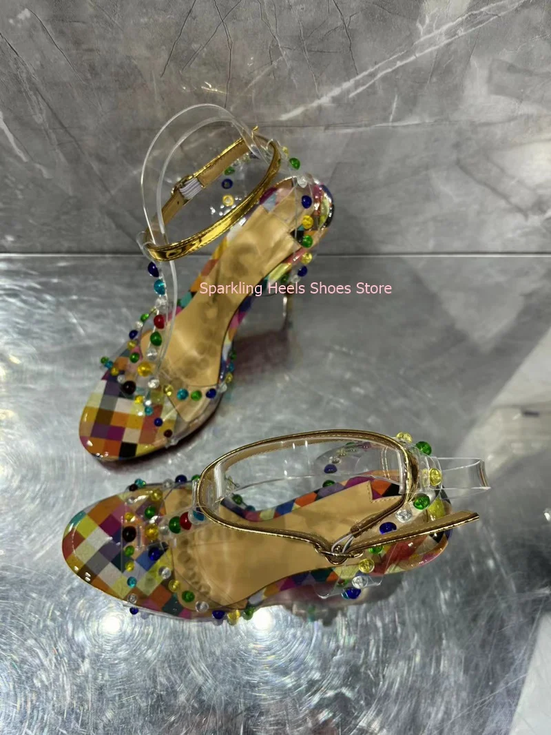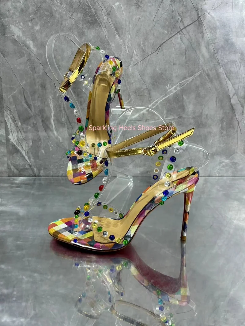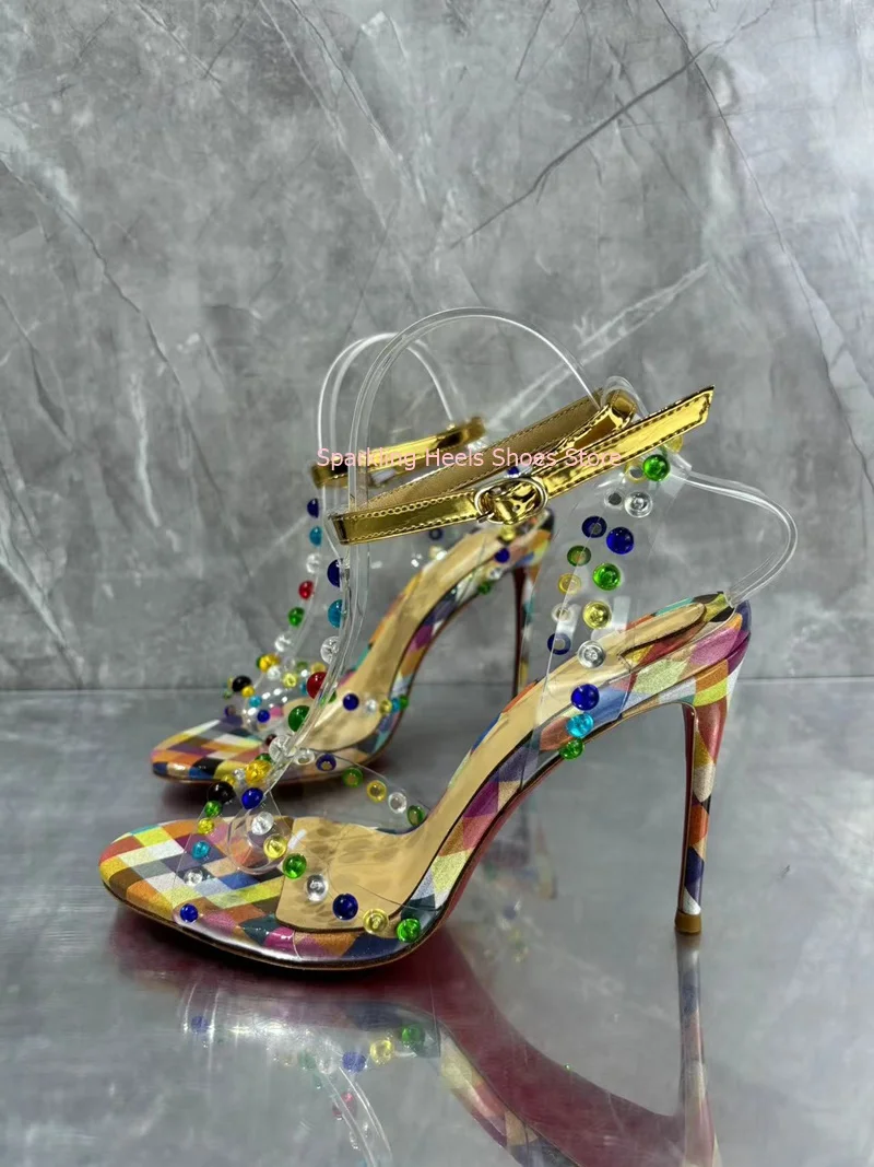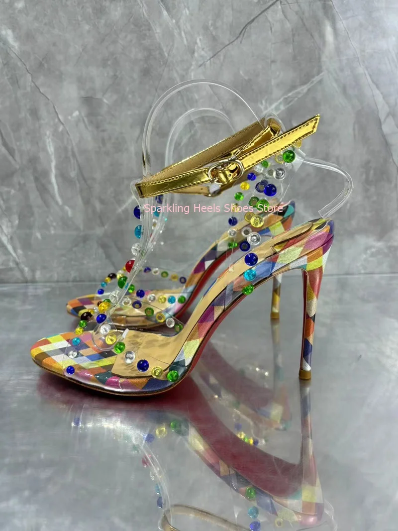 Colorful Crystal Decoration Woman Stiletto Heel Sandals Shoes Diamond Female Thin High Heel Buckle Ankle Strap Sandal Shoes