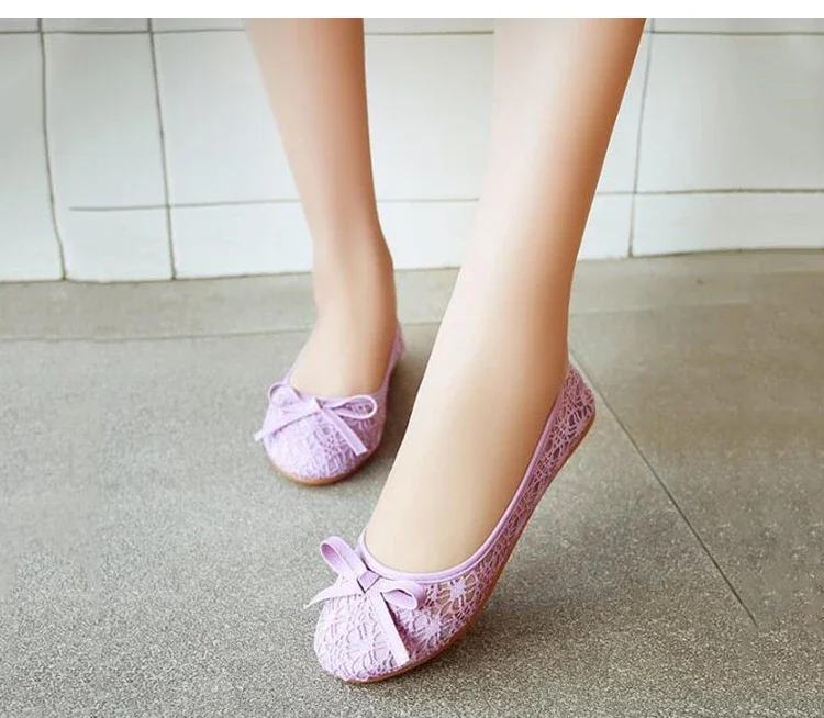 Comemore Ballet Flats Fashion Bow-Knot Women Shoes Slip on Flat Sweet Hollow Summer Female Shoe Beige 2025 New Women Flat Shoes