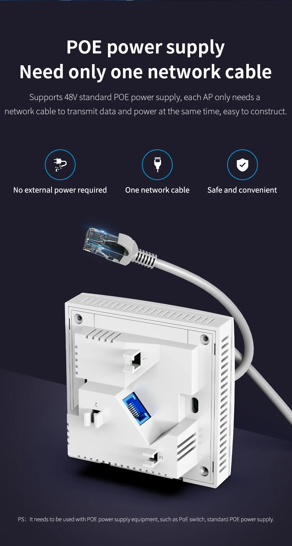 Note: The wall AP need connected with 48V poe switch or 48v poe adapter , if your home do not have 48V poe switch or 48V poe adapter , please order this 48v poe adapter with ap together. thanks !