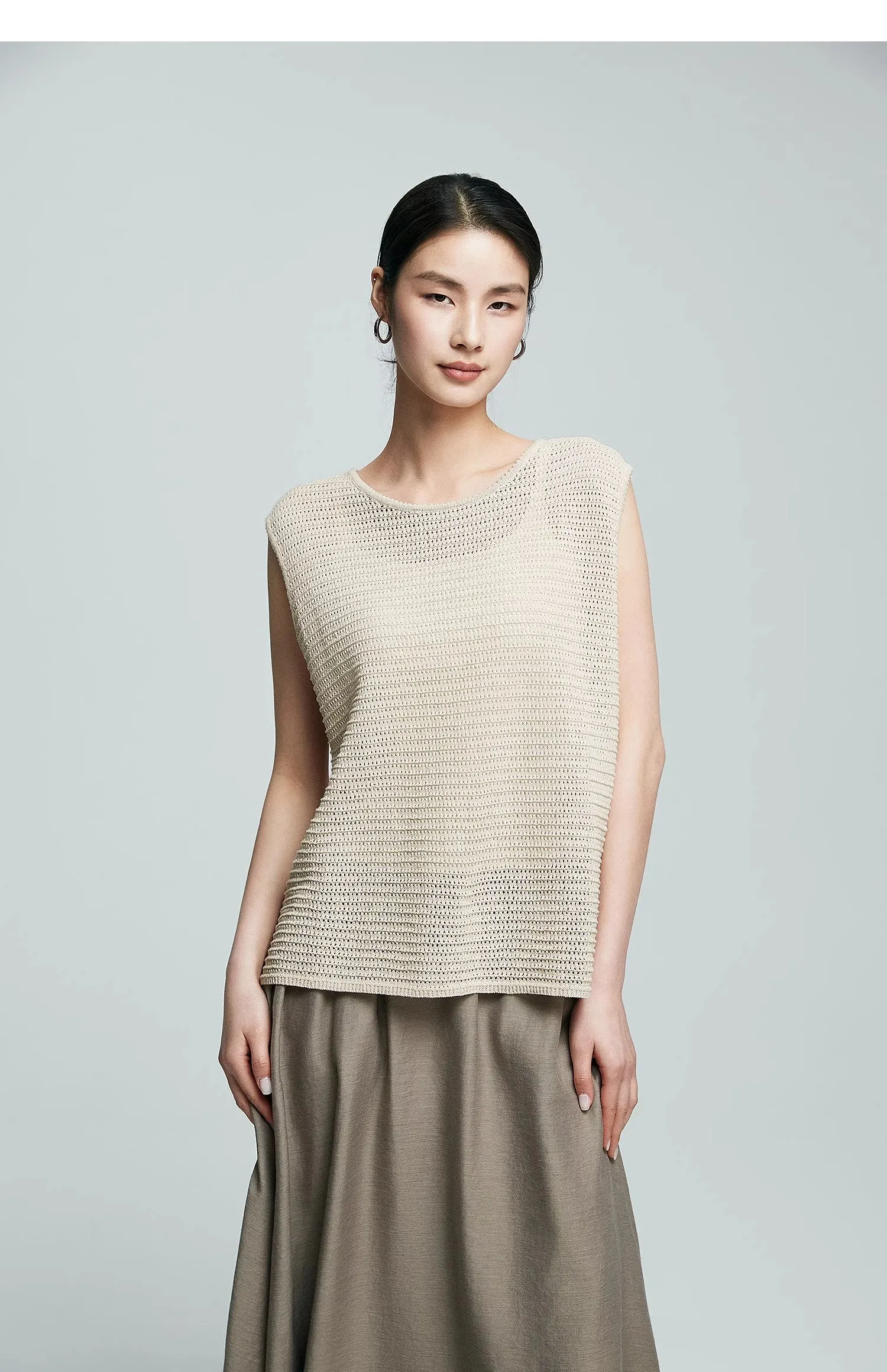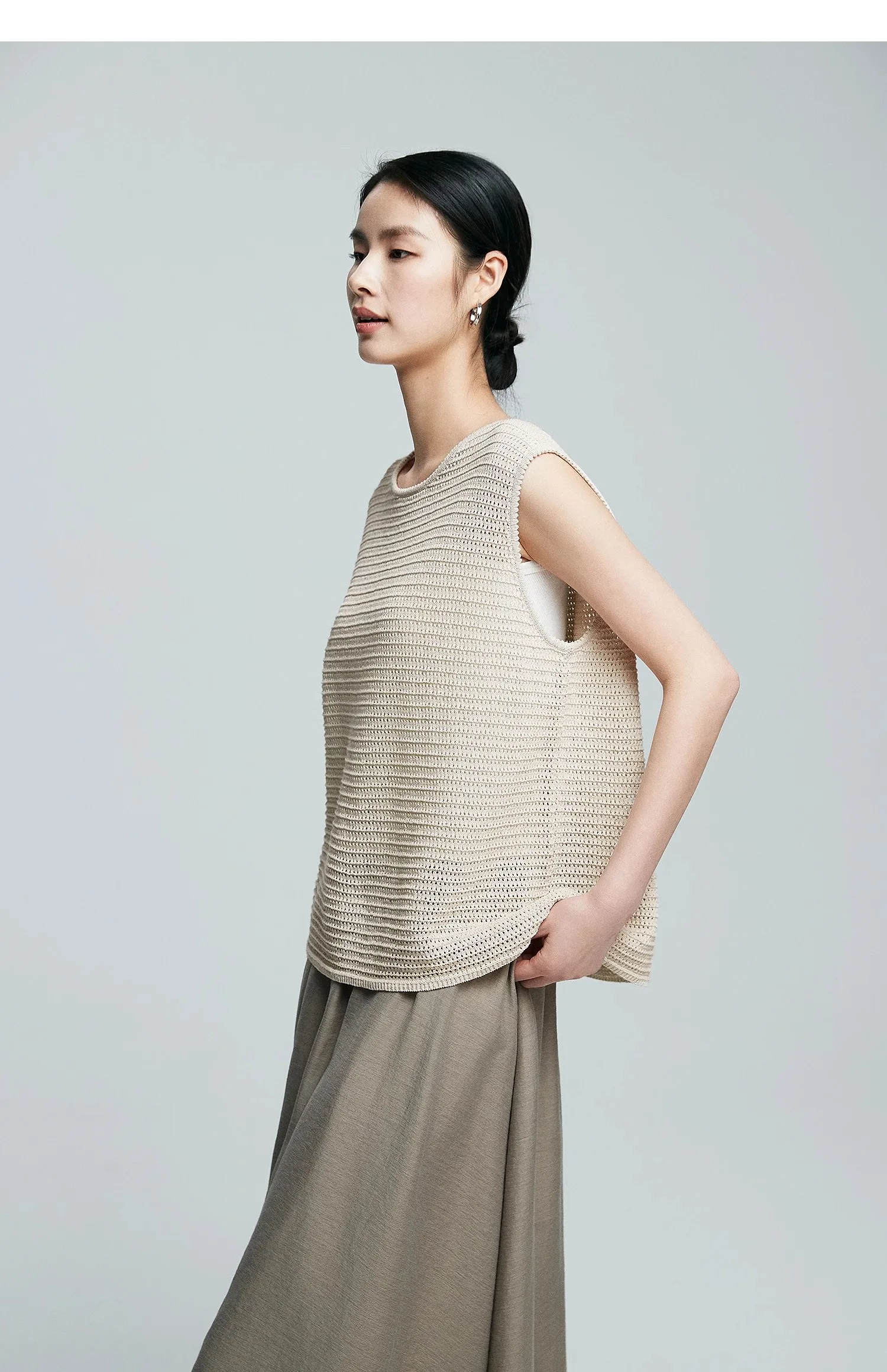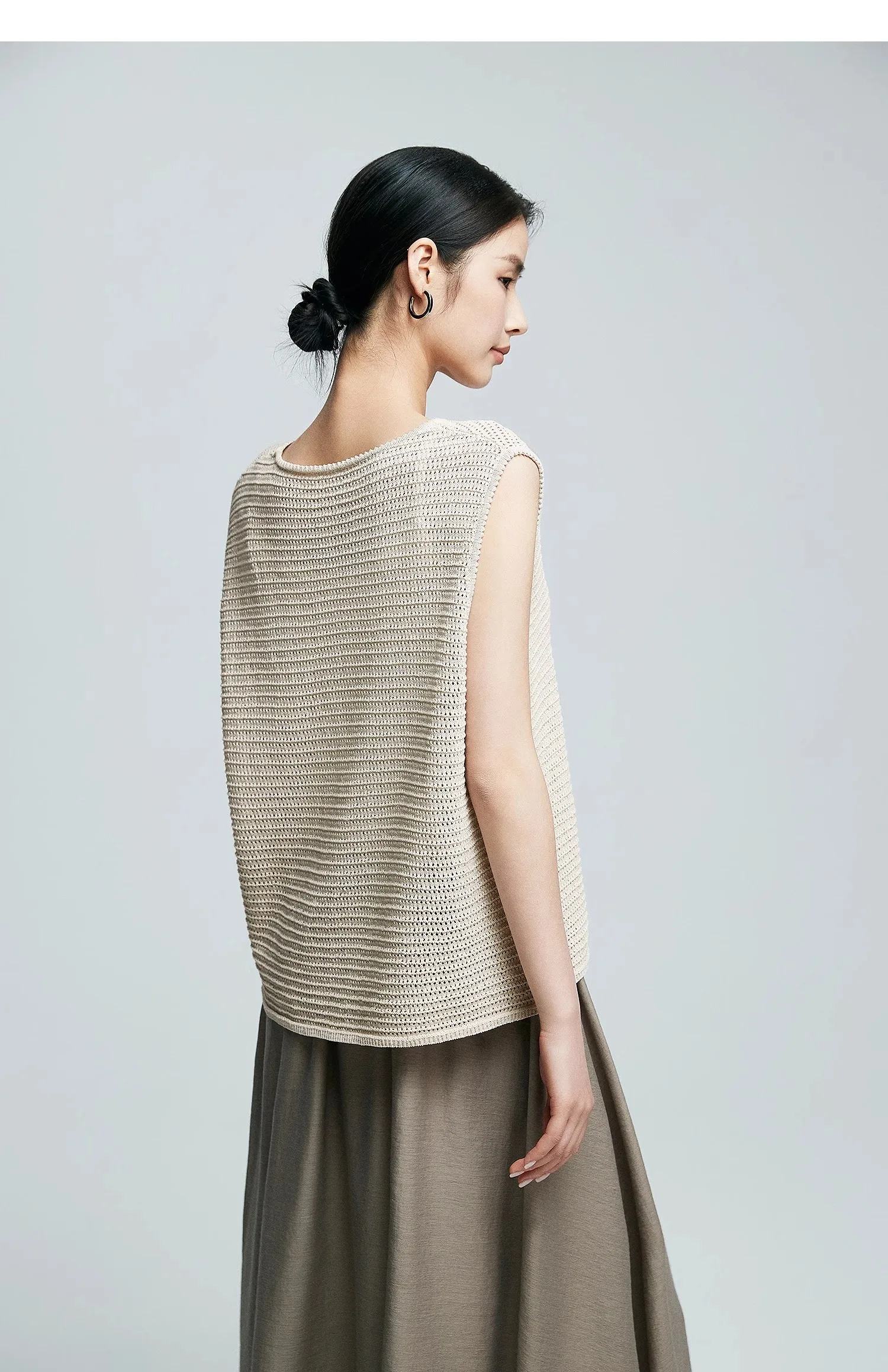 Cotton and linen Sleeveless Loose vest female New products for Spring/Summer 2025 Striped knitted top Hollowed-out design