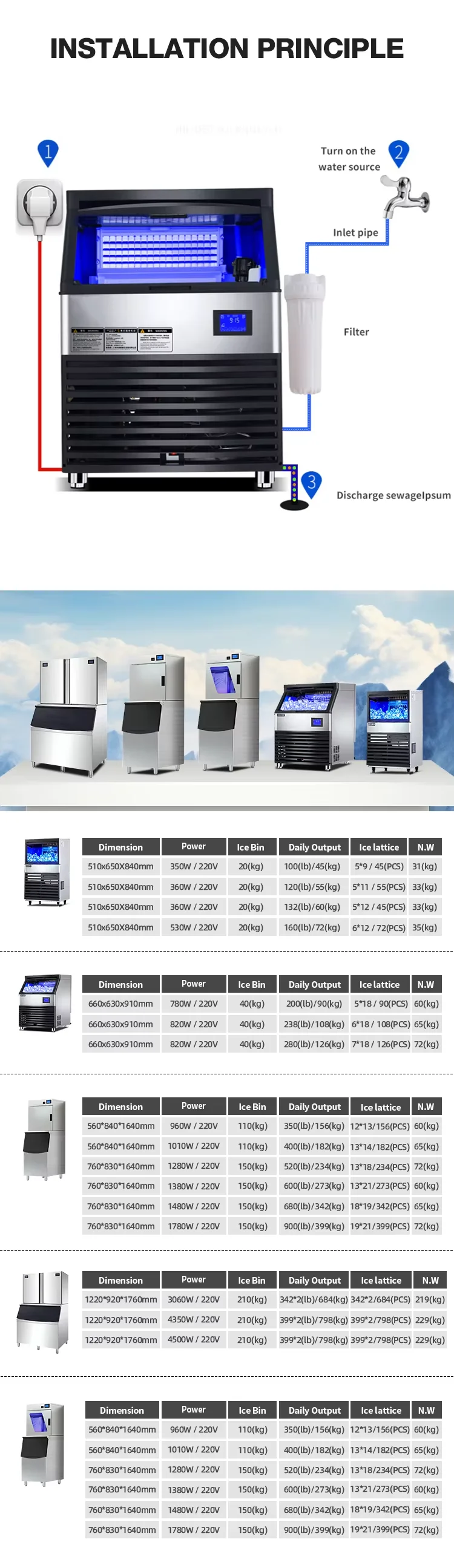 Revised Technical Highlights: 1锛汸atented Siphon Drainage: Unique siphon system actively prevents scale accumulation, ensuring consistently crystal-clear ice production. 2锛汷verflow Drainage System: Continuous
