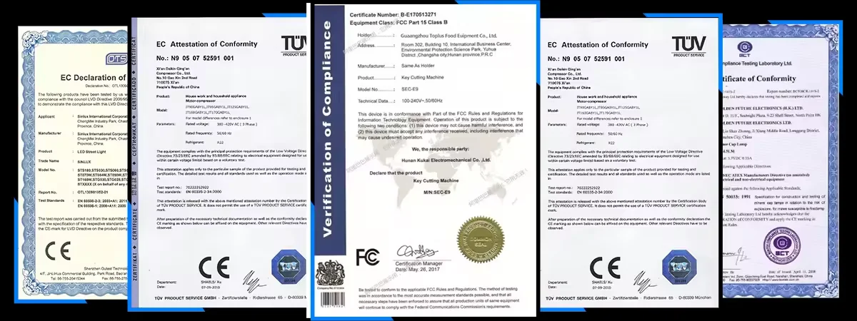 - machinery test report: Provided