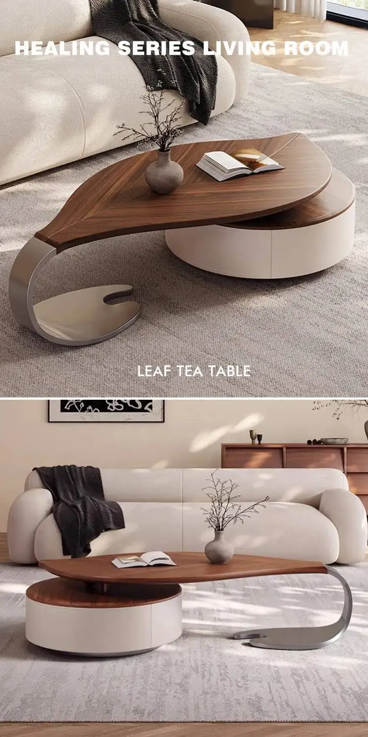 Modern Leaf Shape Walnut Veneer Coffee Table Light Luxury Living Room Home New Designer Creative Special Shape Coffee Table