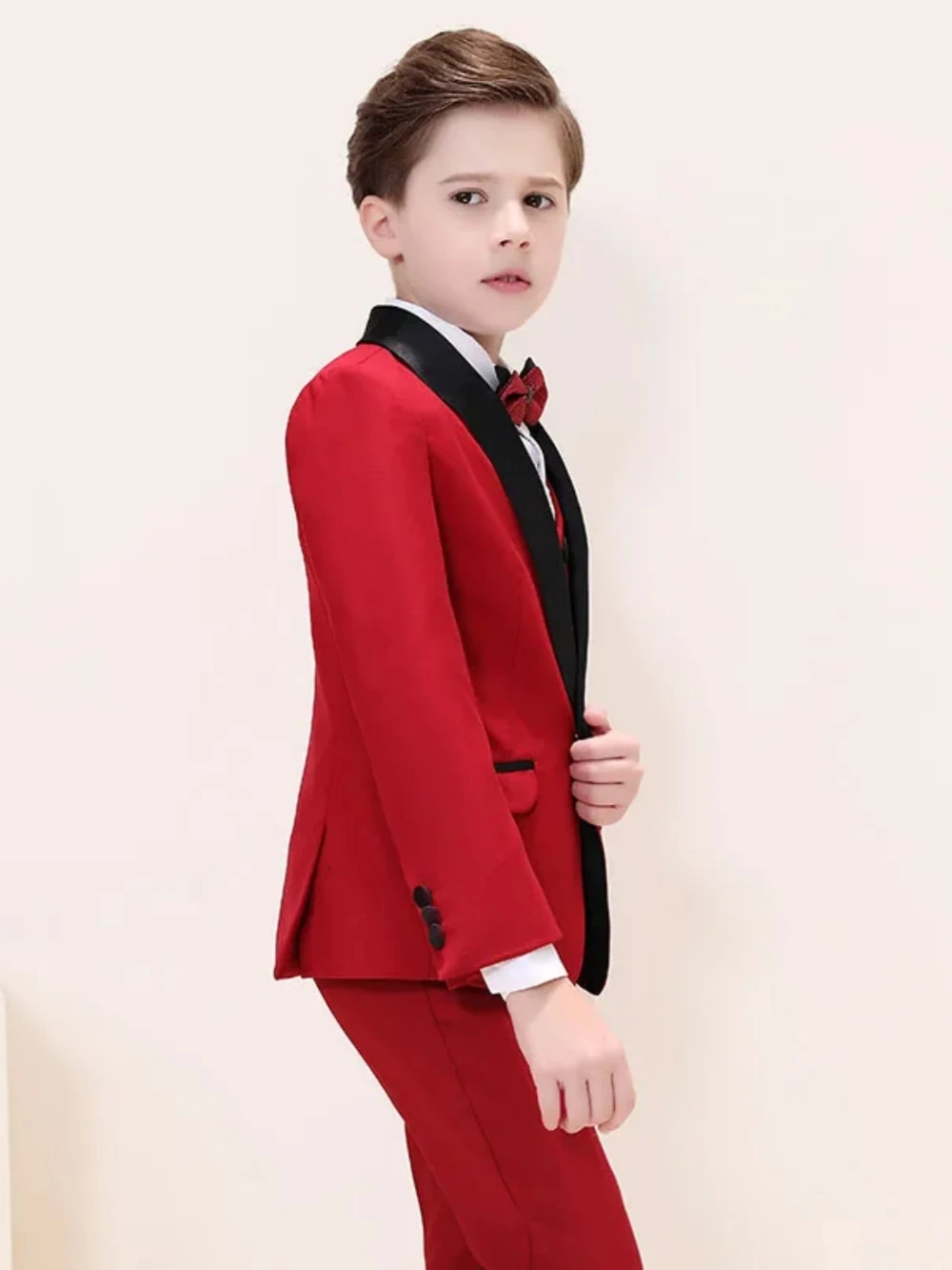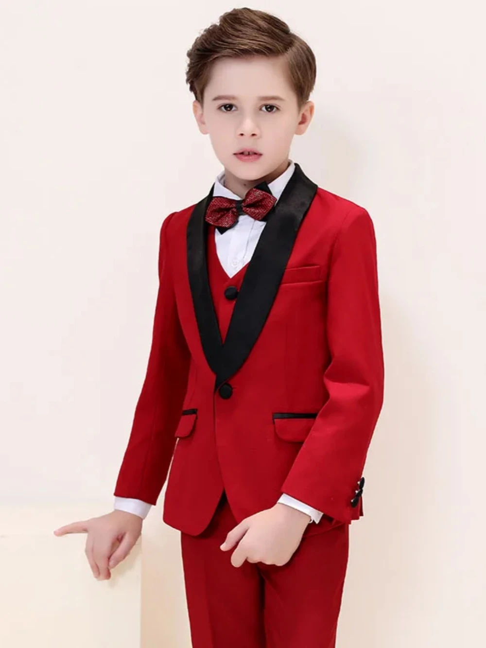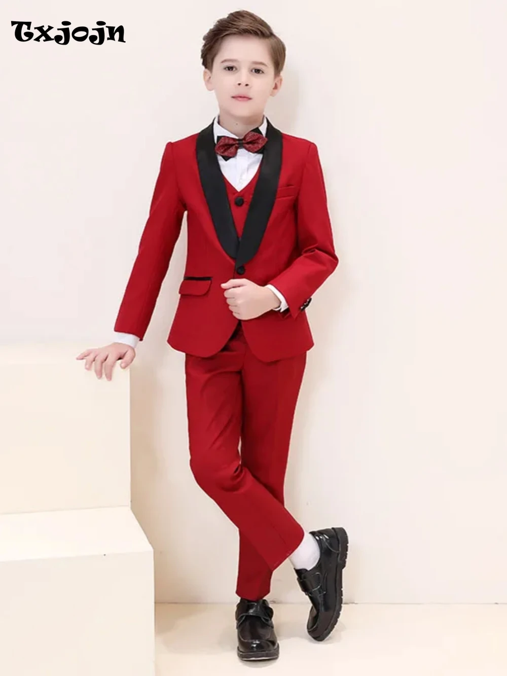 Customize Child Suit Set 4 Pieces Blazer Vest Pants Bow-tie Wedding Party Handsome Slim Fit Boys Dresswear For Activities