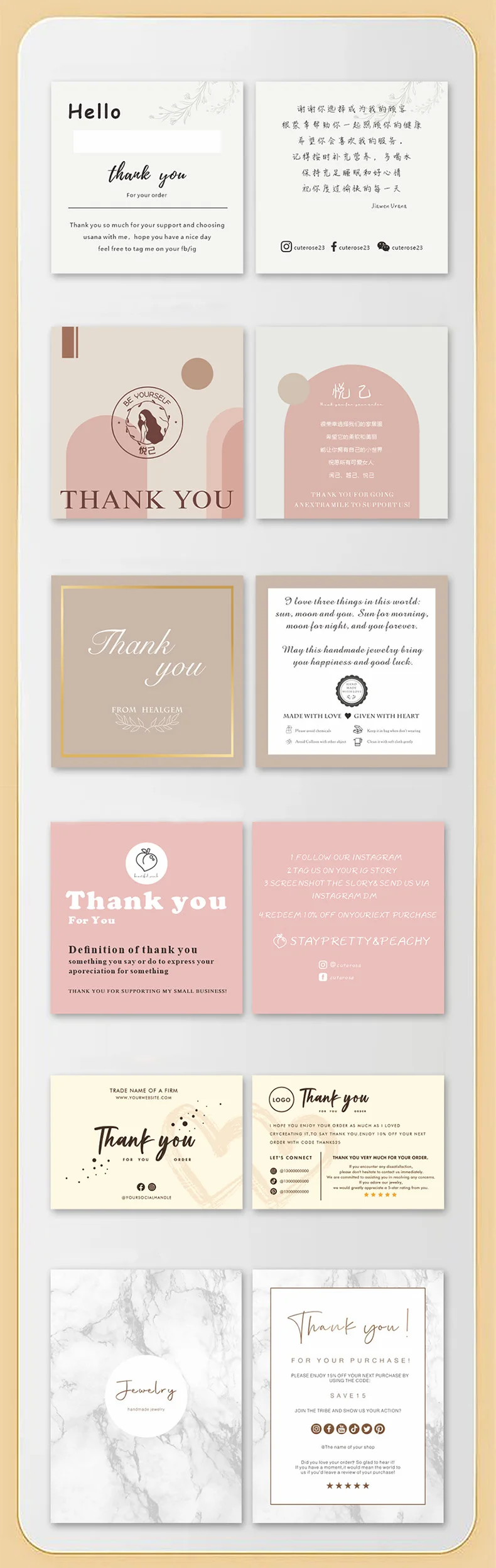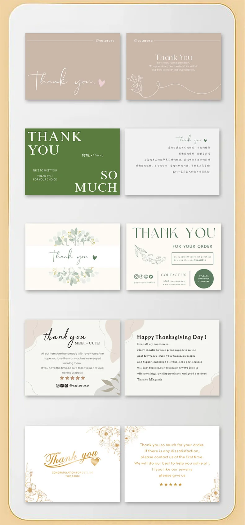 Customized Thank You For Your Order Card For Small Shop Gift Decoration Card For Small Business Coated Paper Personalized Logo