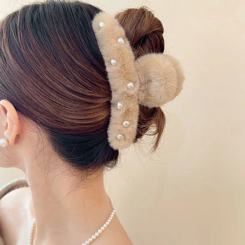 Cute pearl plush grab clip back of head autumn and winter hair accessories hairpin sweet hair grab