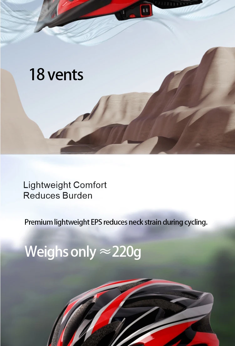 The cycling helmet features an integrated molding design, offering a snug fit for both men and women.