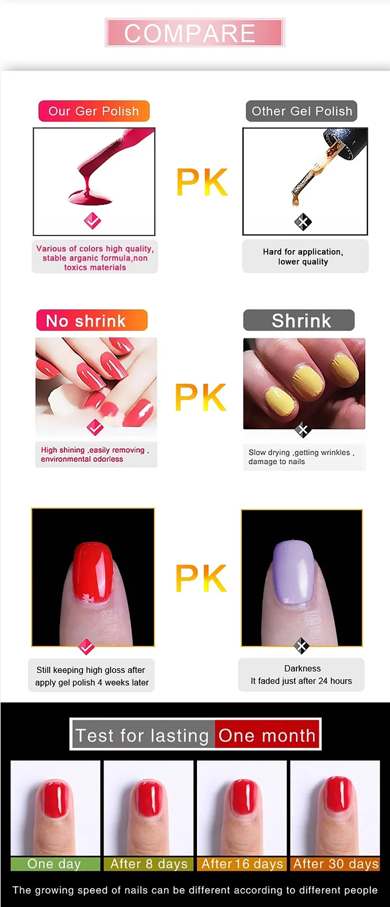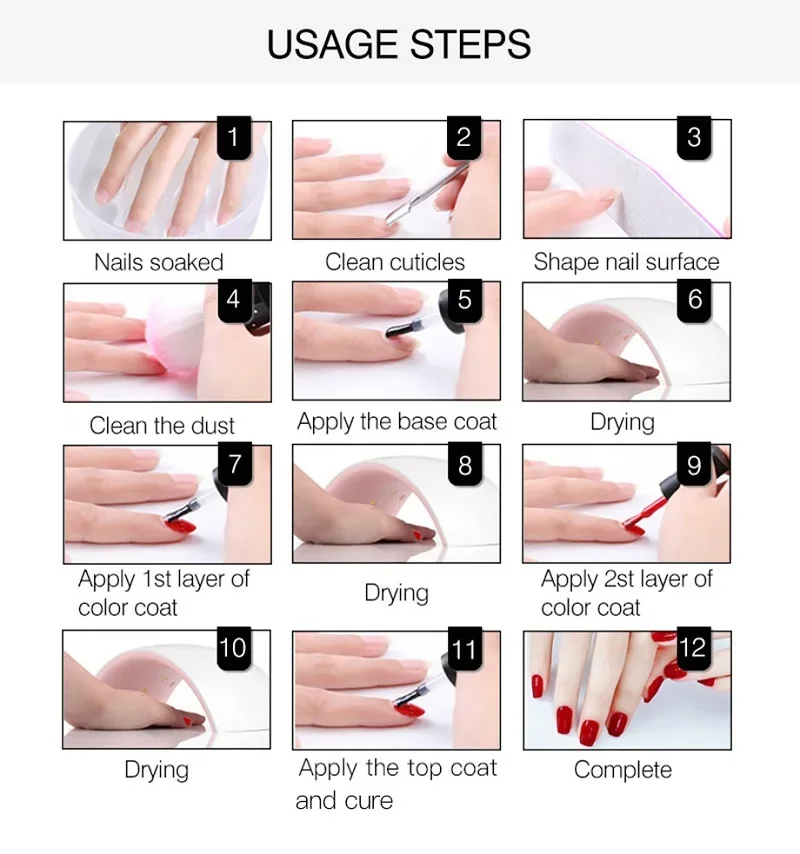 2.Suitable to apply on UV gel nails,acrylic nails and natural nails etc.