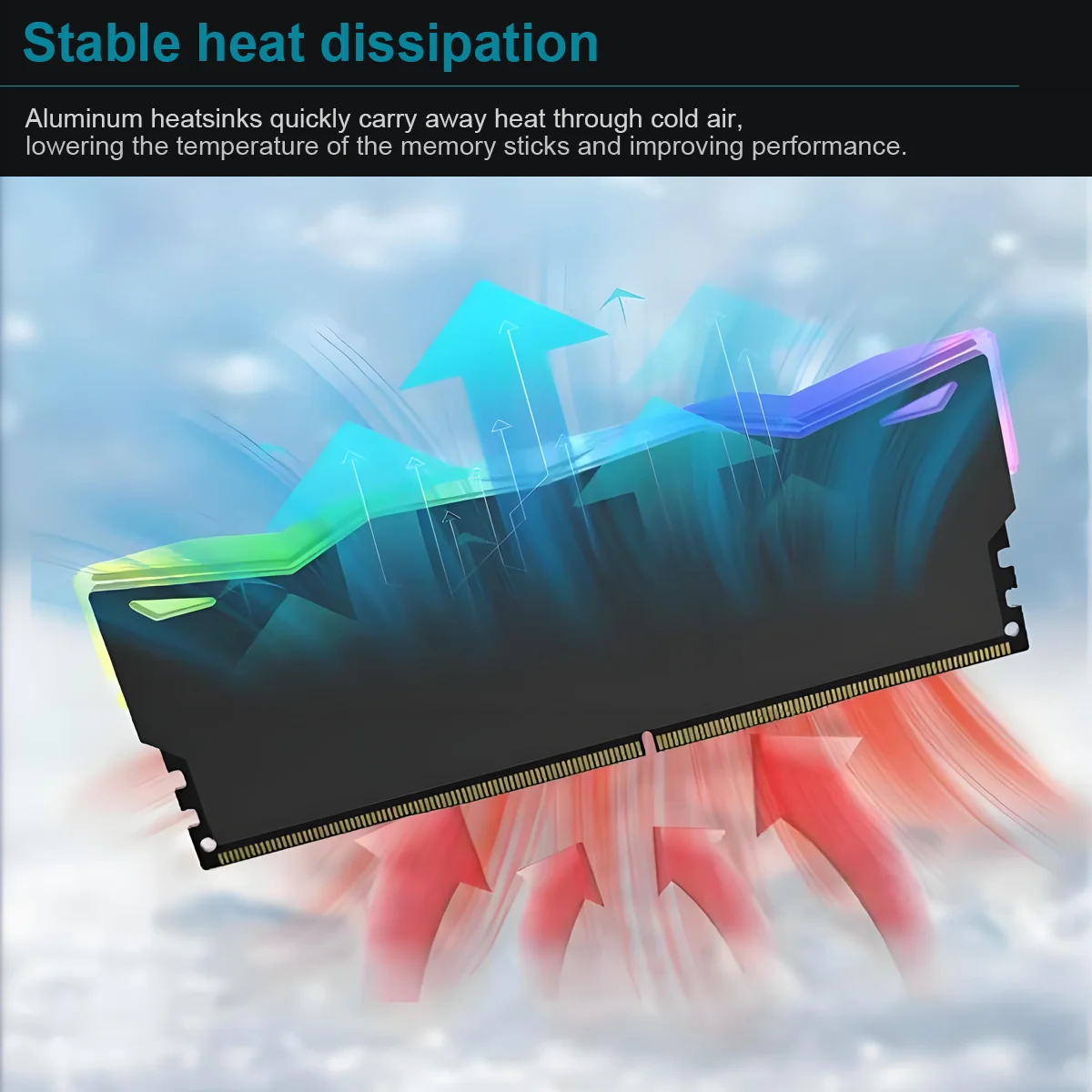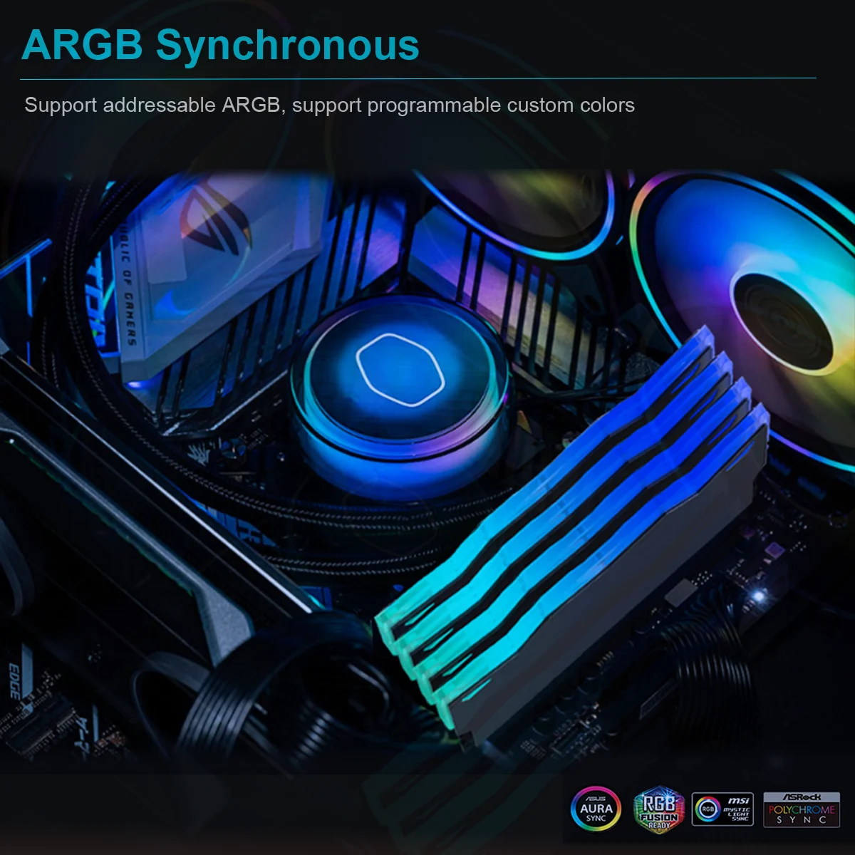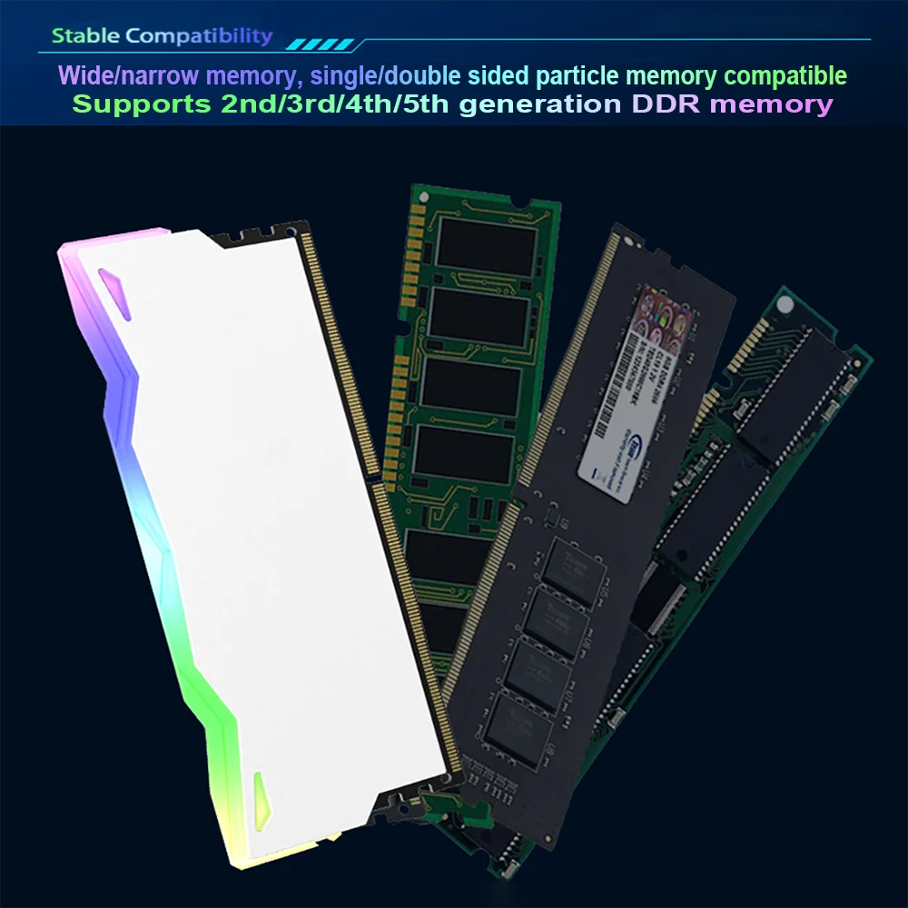 DDR Memory Cooler 5V-3PIN ARGB Memory Cooler, Aluminium Alloy with Thermal Silicone Pad for DDR5 DDR4 DDR3 DDR2 Desktop Compute