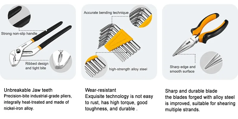 Adaptability: A multifunctional and widely used toolbox kit that is perfect for home DIY projects, including furniture assembly, woodworking, daily maintenance, and more