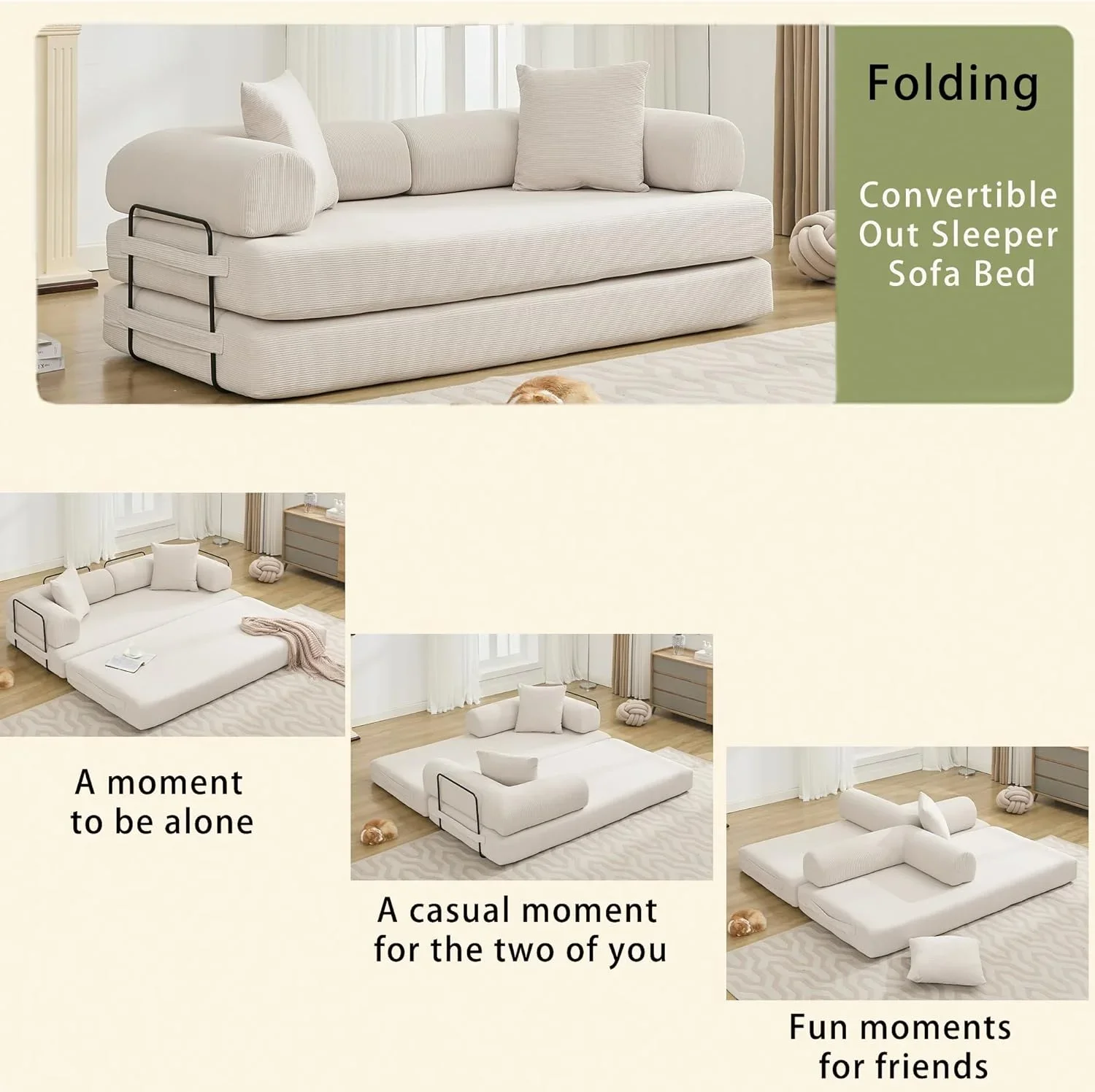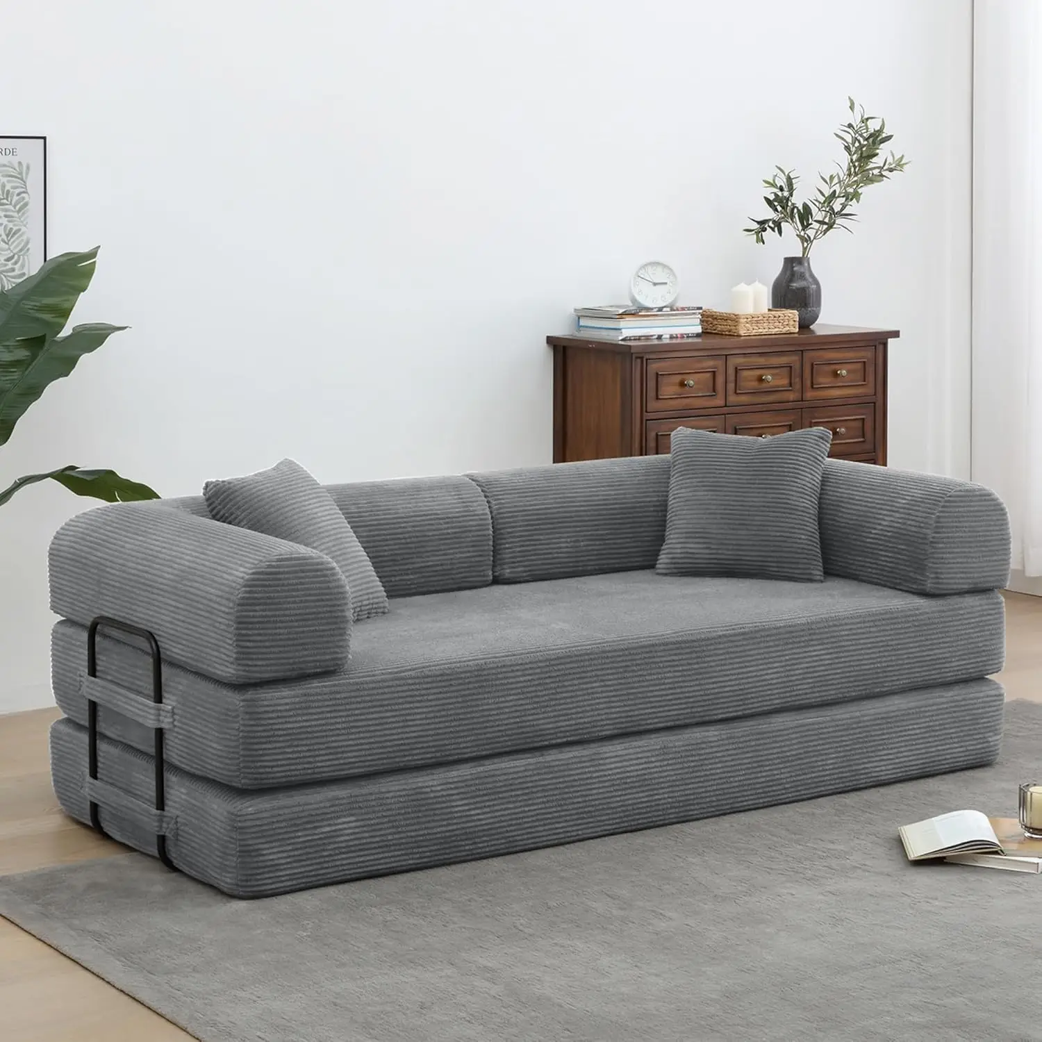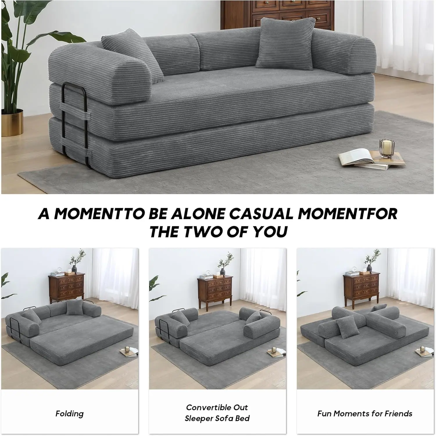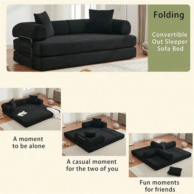 DIGGERA 79″ Compression Sofa Convertible Sofa Bed Boneless Couch Sofas Convertible Folding Comfy Corduroy Sleeper Floor Sofa Bed