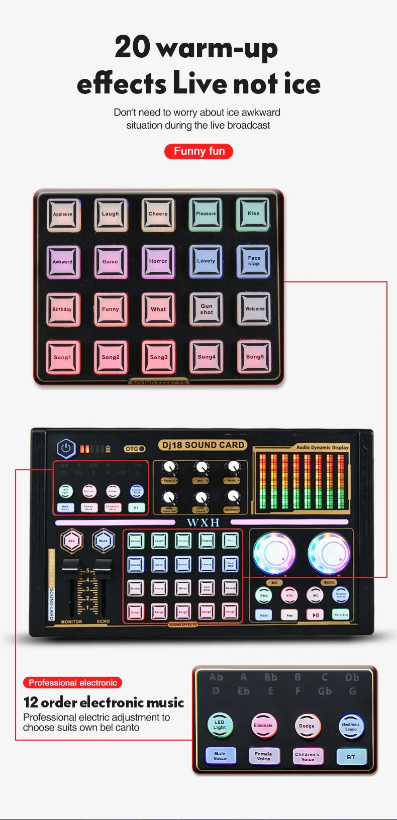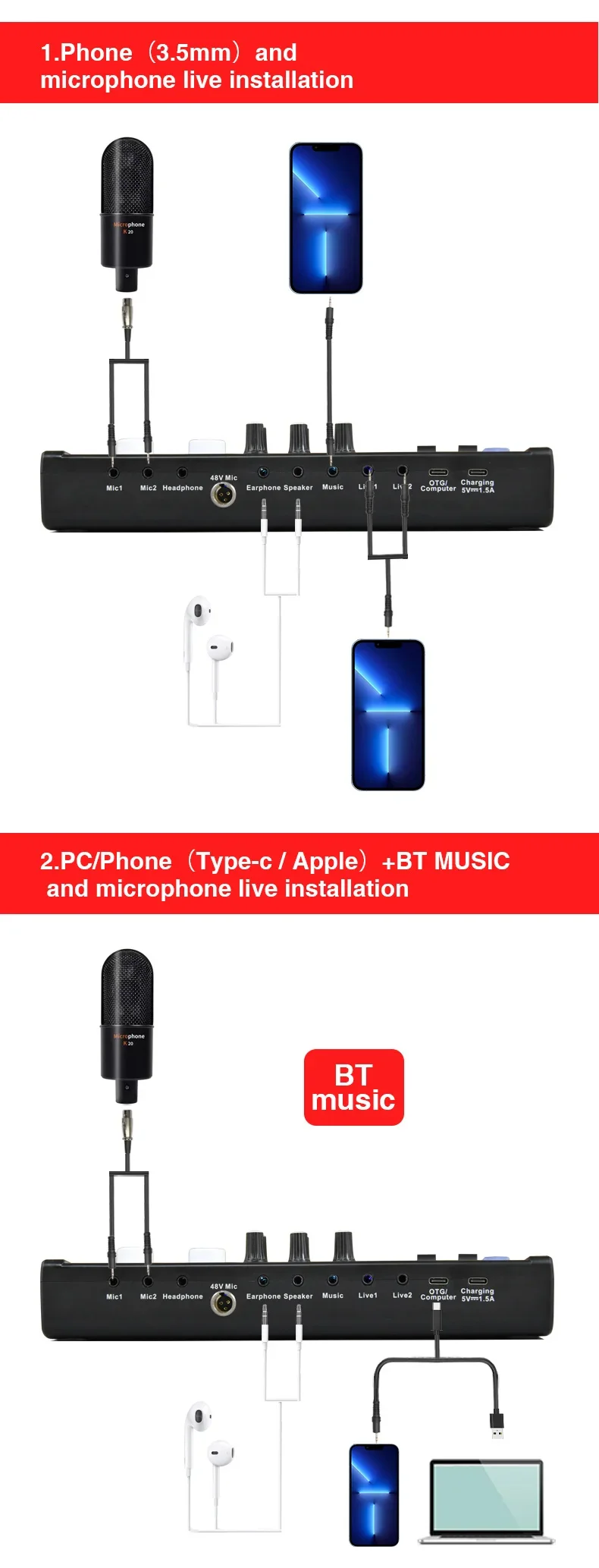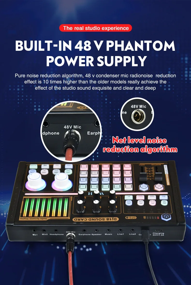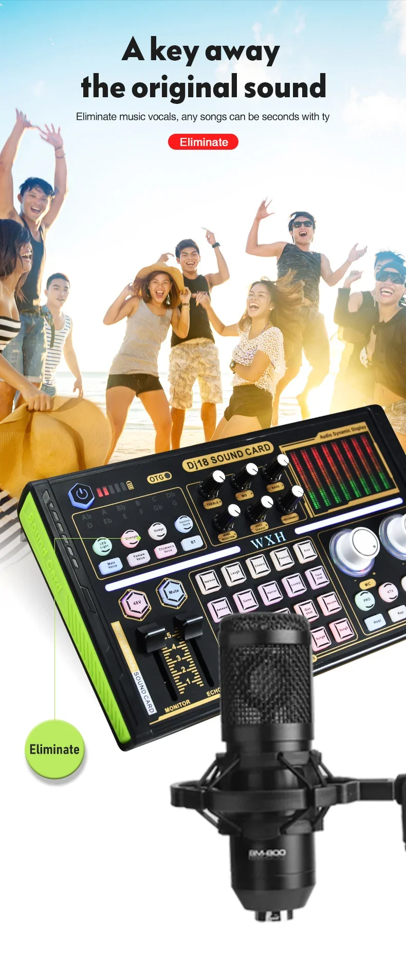 DJ18 Sound Card Studio Record Professional Mixer Singing Noise Reduction Microphone Voice BM800 Live Broadcast Mick Tok Music
