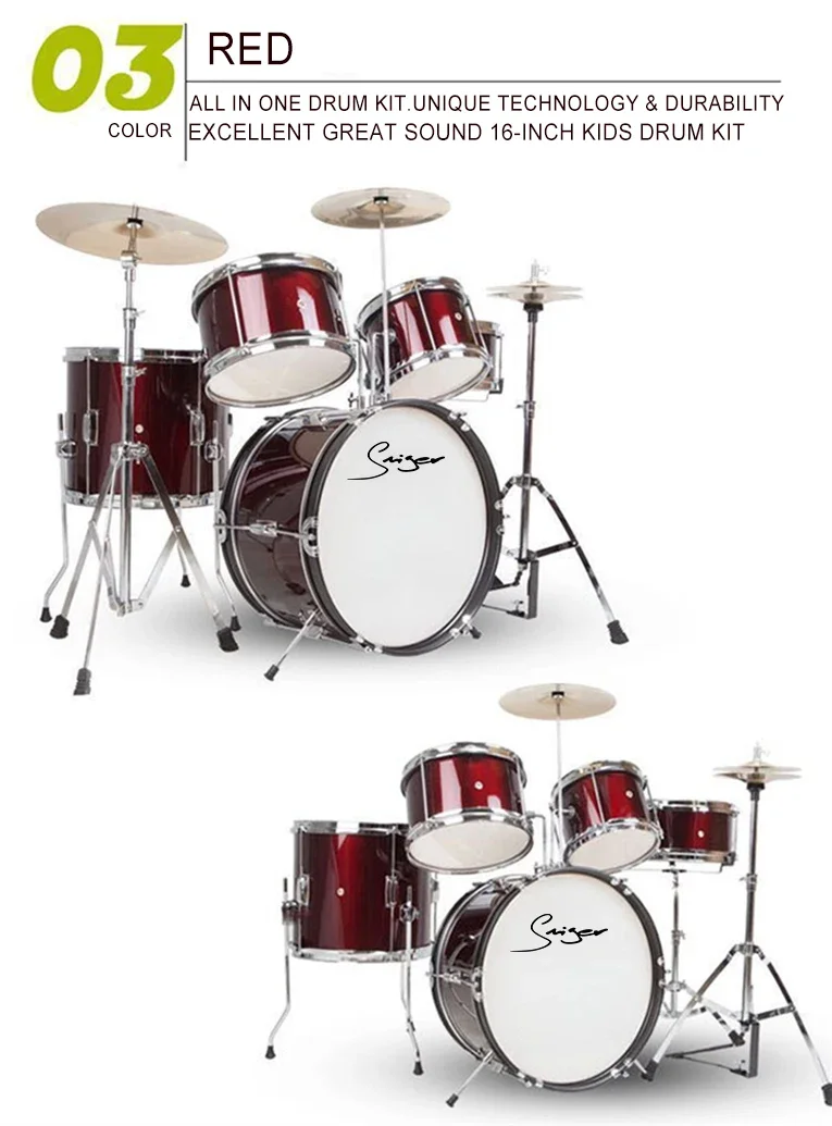 Drum Kit High Quality Musical Percussion Instrument 5 Piece 3 Cymbals Professional Kid Drum Set Ideal for Beginners, Students