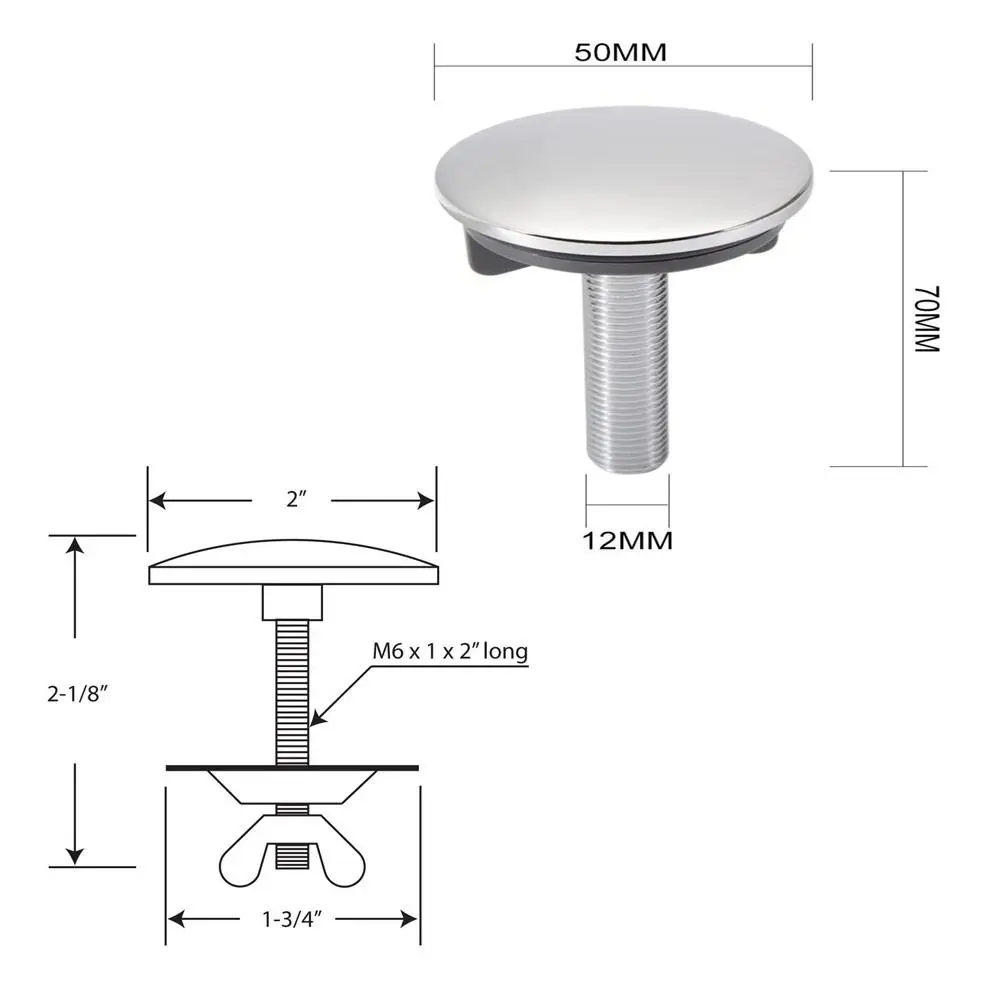 Kitchen sink hole cover diameter 2″ for hole size between 0.43 to 1.77 inch.