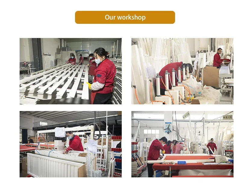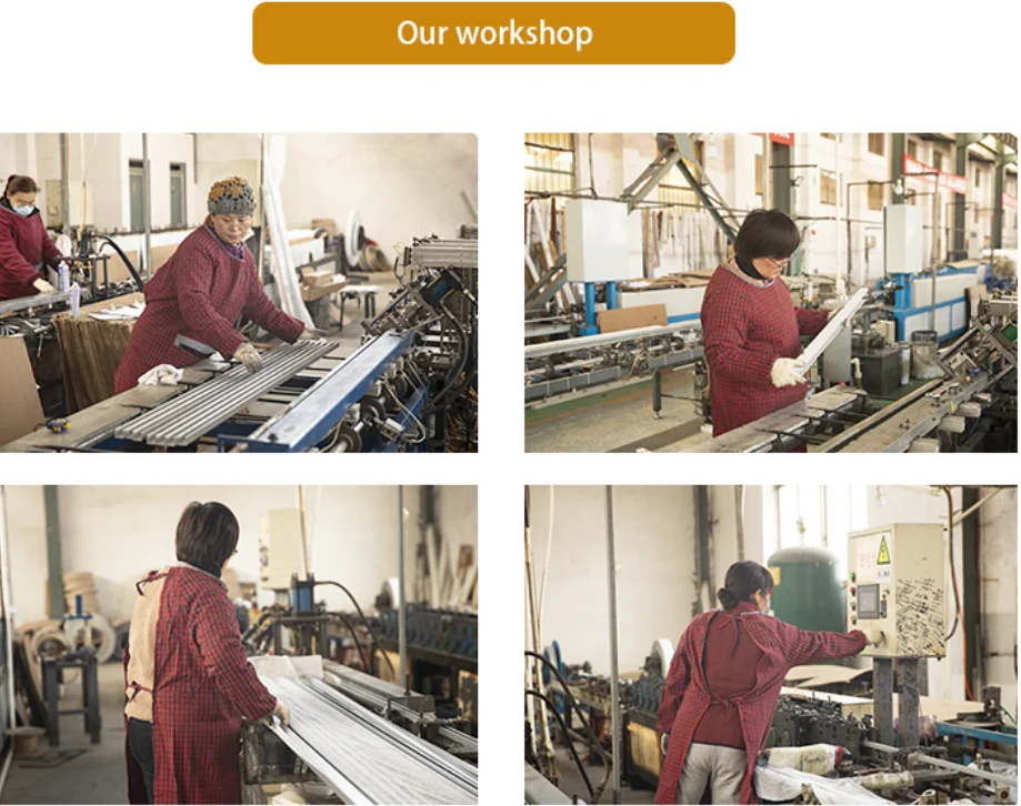 Our company has 7 sets production line for producing aluminum slats, 2 sets of production line for producing the head and bottom rail, 8 sets of production line for producing the PVC louver.
