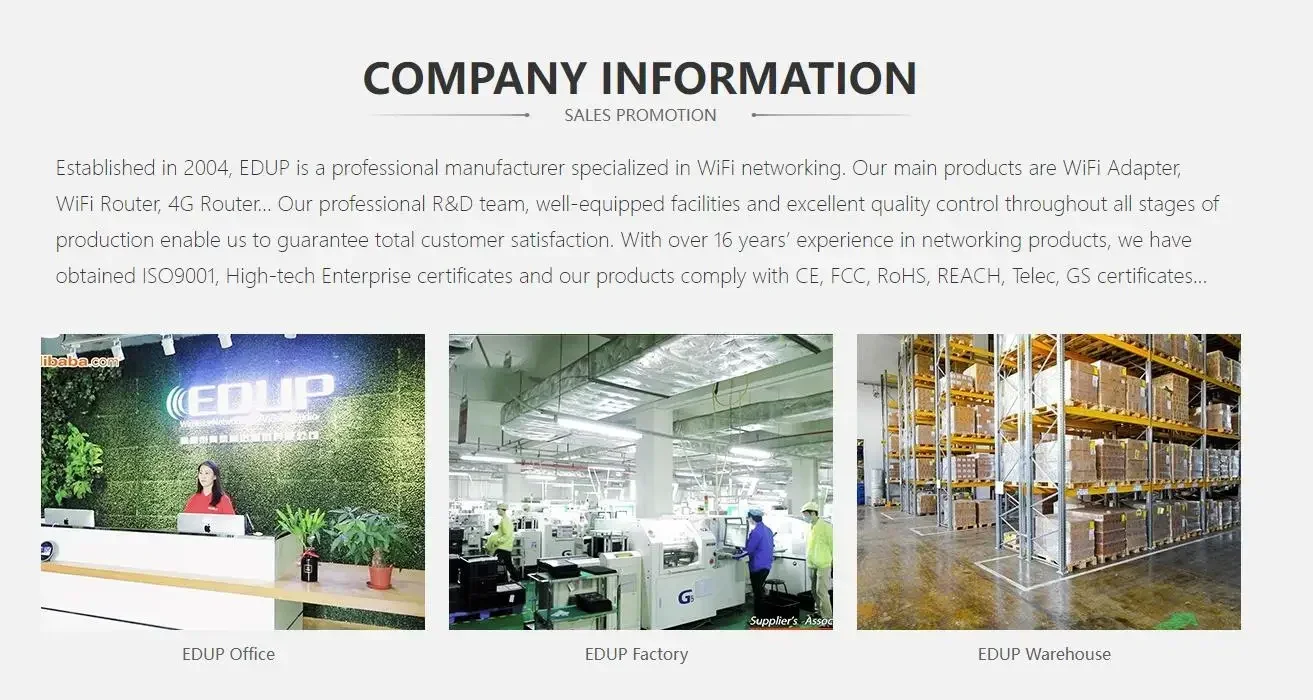 Advanced Technology: EDUP is a large electronic technology company integrating R & D, production, and sales of wireless network and wireless audio-visual products. It has advanced technical strength and continuously invests in research and development to introduce products with excellent performance. For example, its wireless network adapters use the latest chipsets to provide faster transmission speeds and more stable signals.