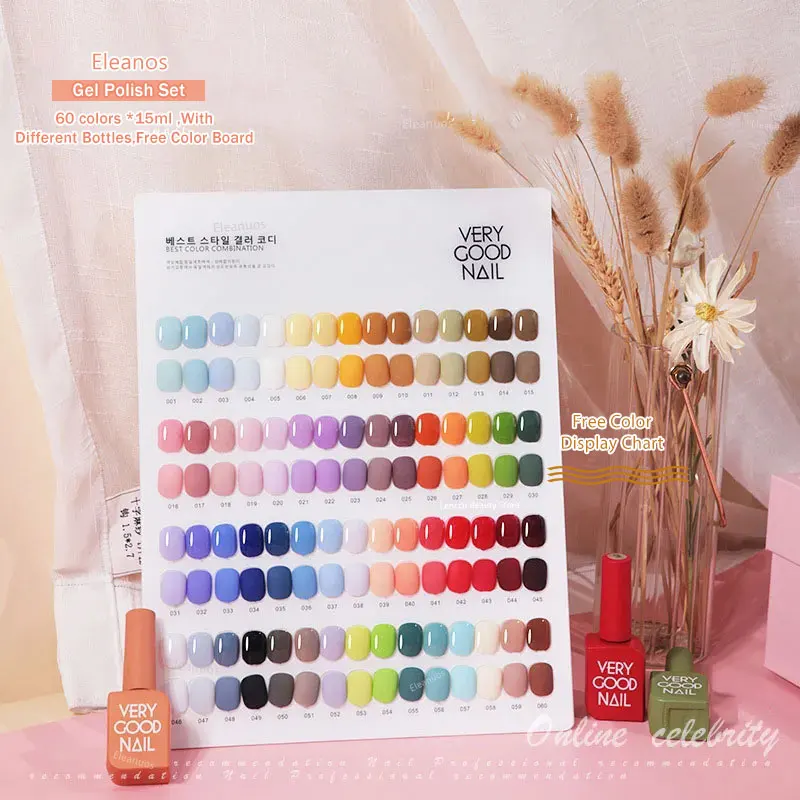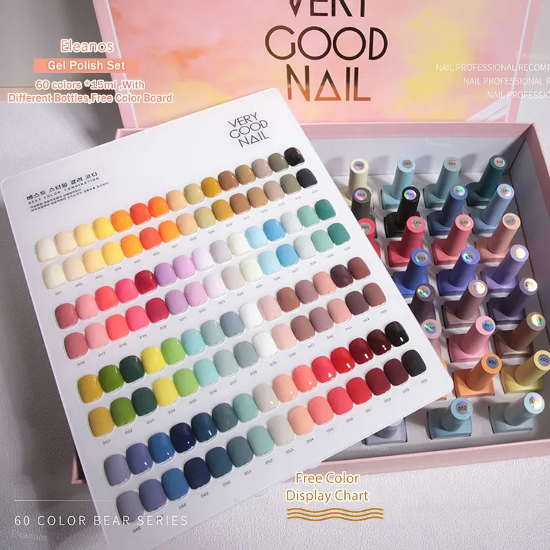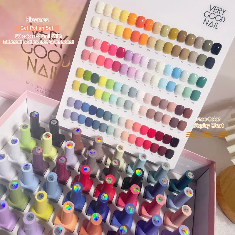 Eleanos 60 Colors Gel Polish Set Very Good Nail Gel Kit With Different Bottle For Nail Art Whole Set Nail Gel Polish Learner Kit