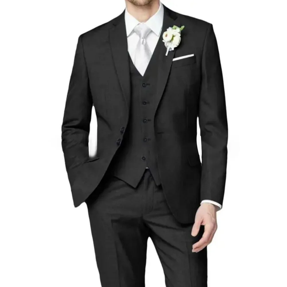 Elegant full 3 Piece Black Classic Formal Business Suits for Men(Blazer+Vest+Pants)Casual Men’s Suit Groomsmen Wedding Mens Suit