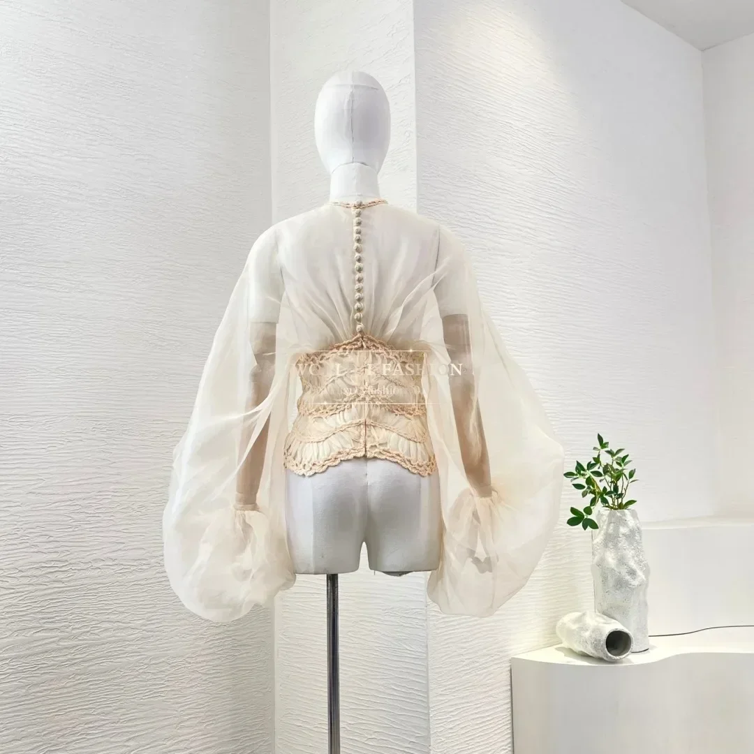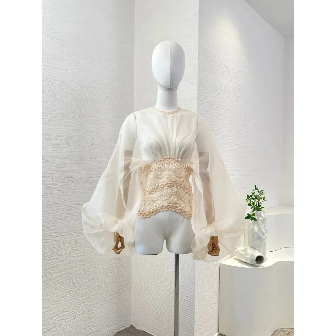 Elegant Summer Women Blouse 2025 New White High Quality Tops