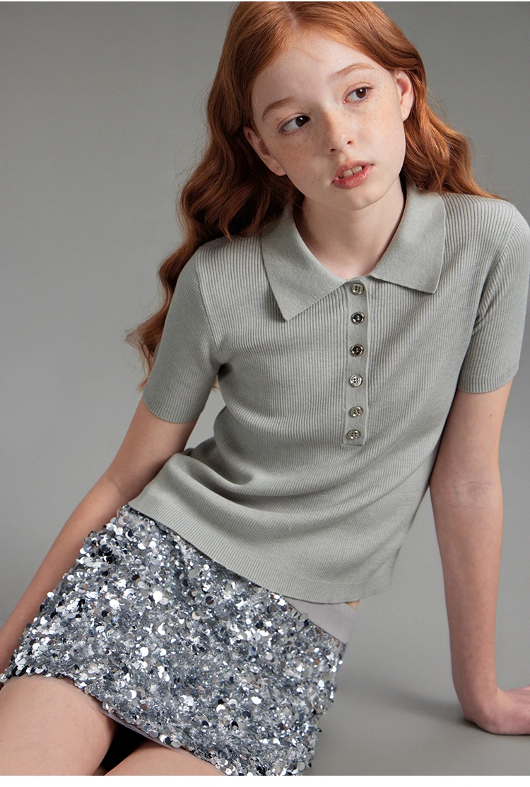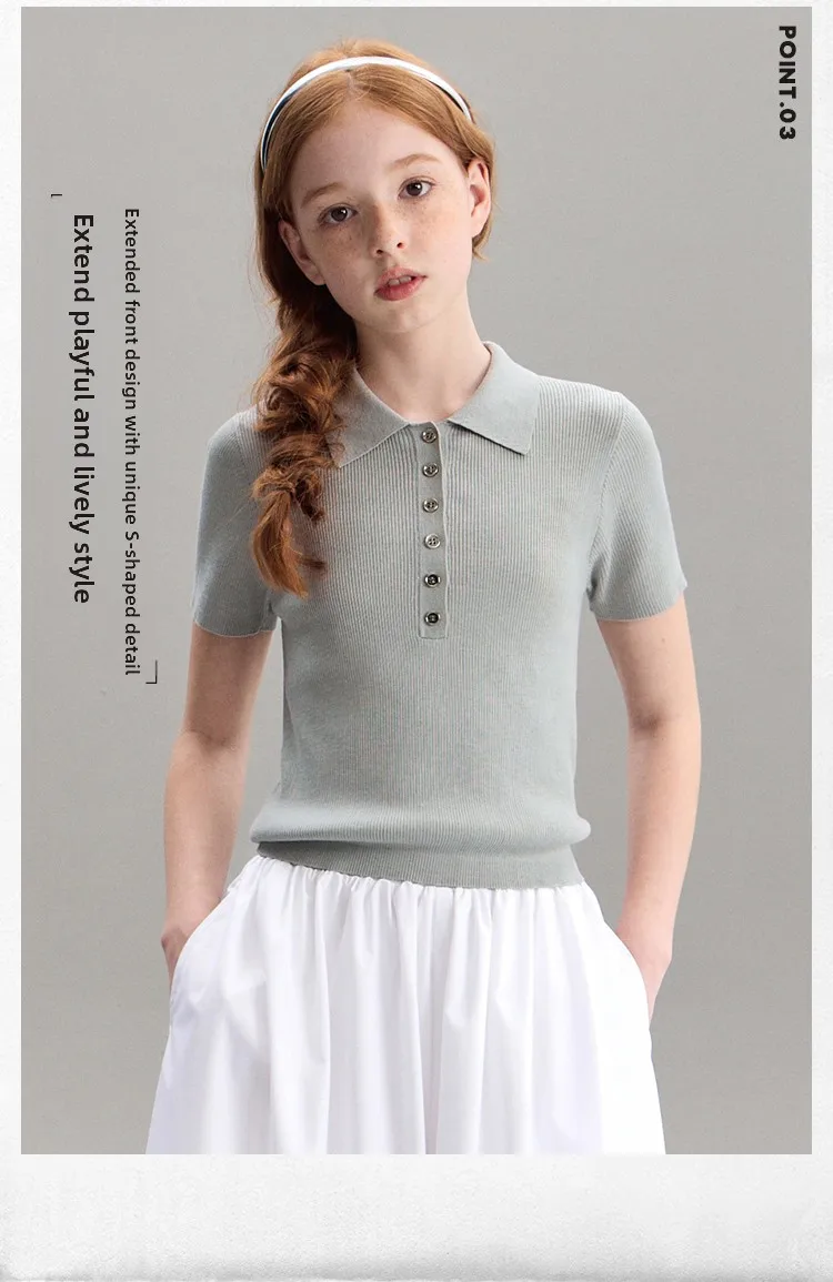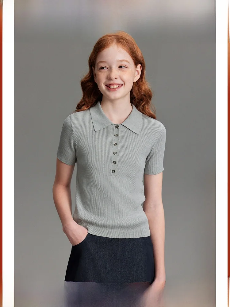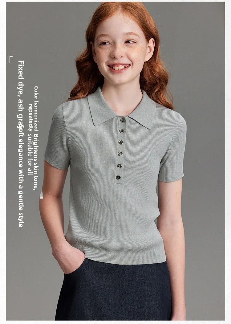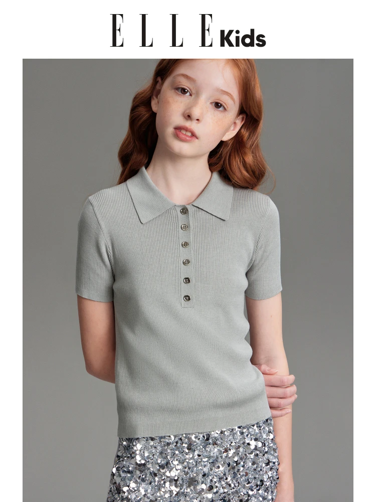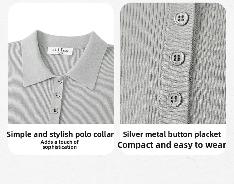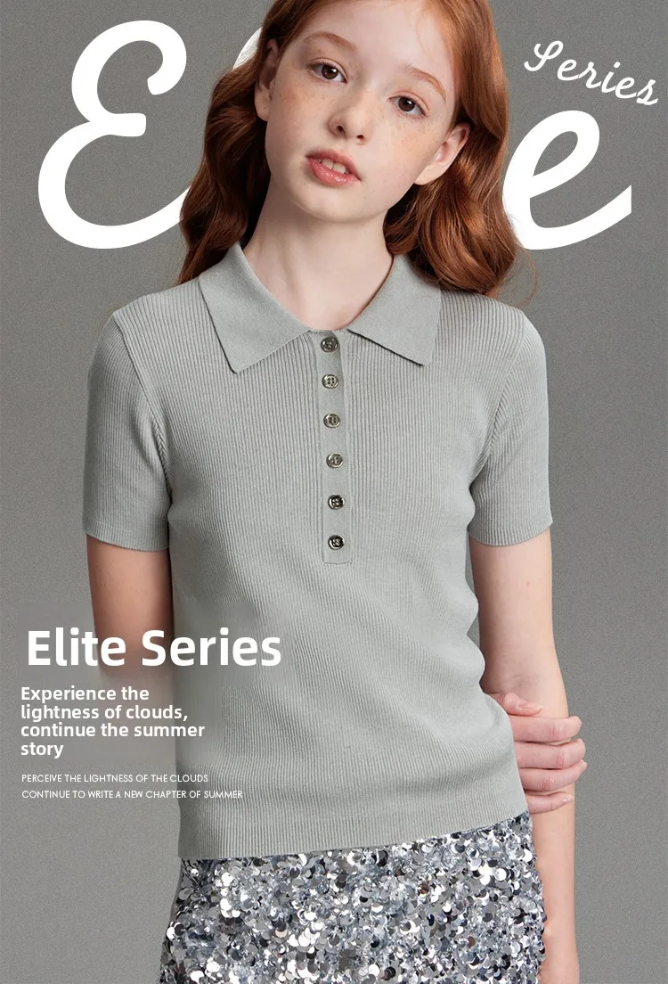 Ellekids Slim Fit ort Sve Ne Knitwear for Girls Summer New Sle Children’s Clothing Ry Cotton Blend Lightweight