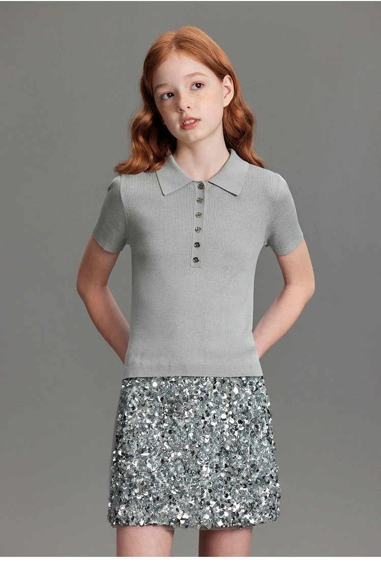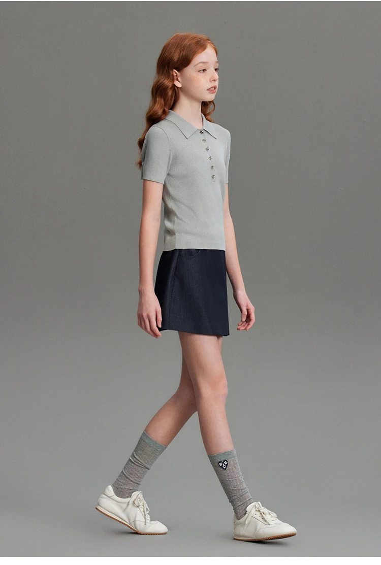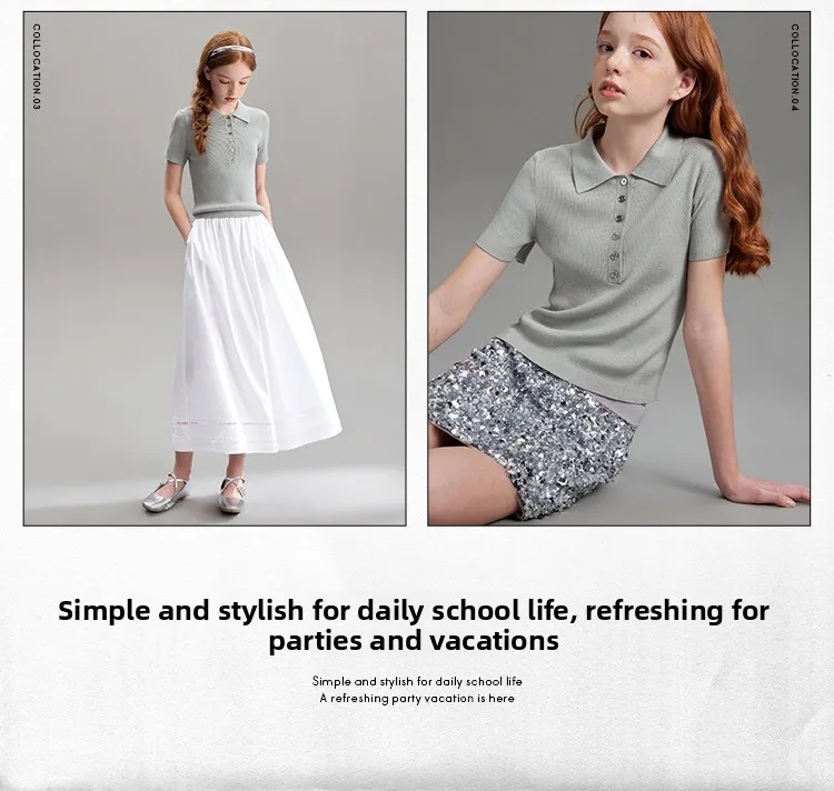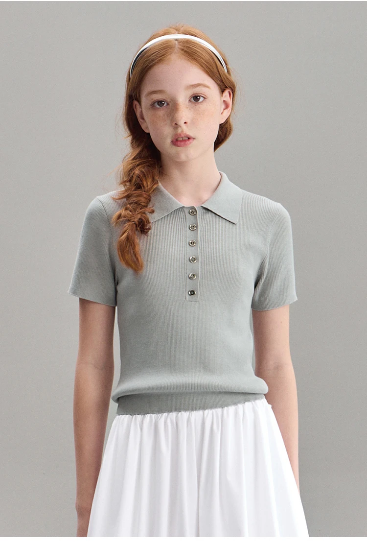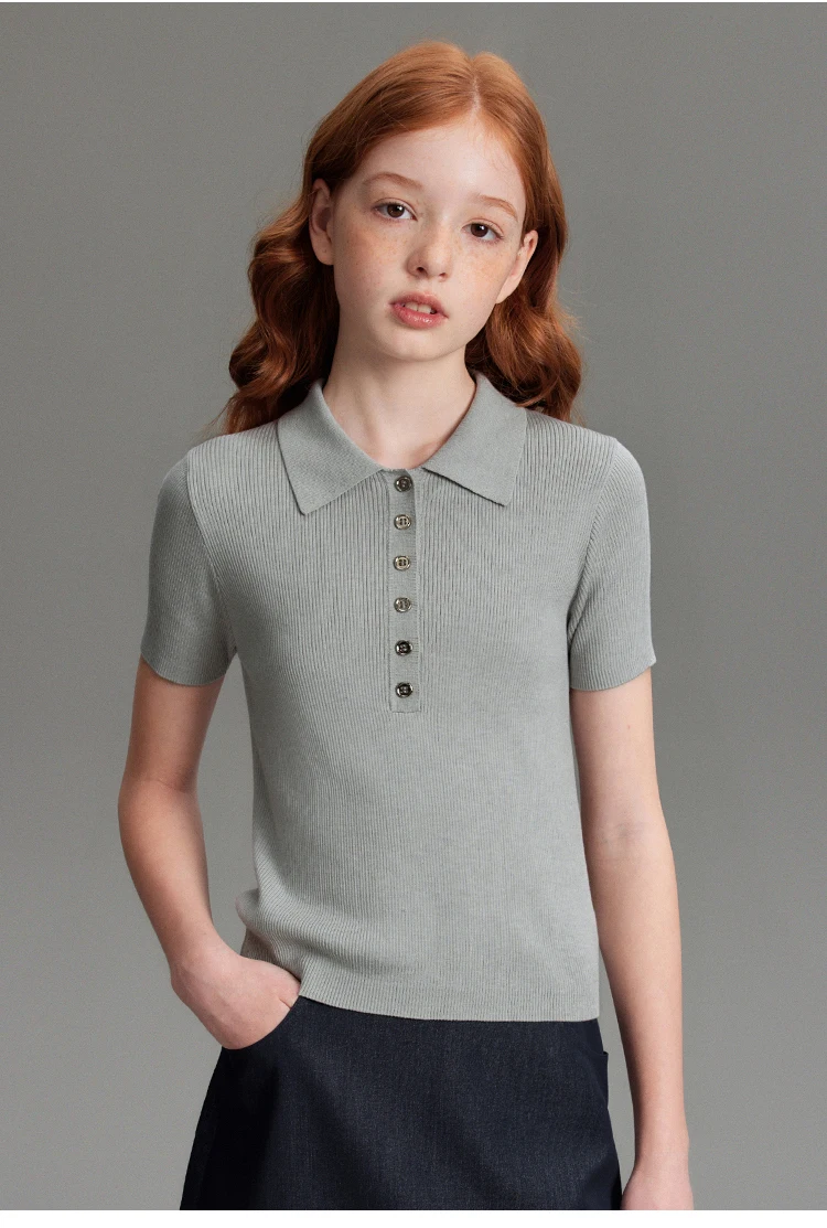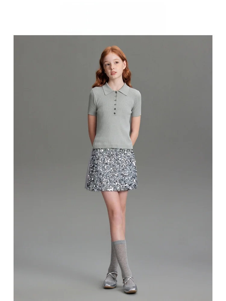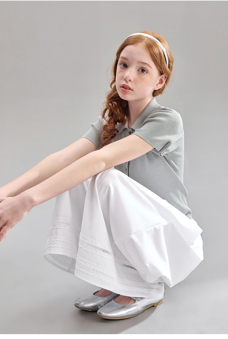 Ellekids Slim Fit ort Sve Ne Knitwear for Girls Summer New Sle Children’s Clothing Ry Cotton Blend Lightweight