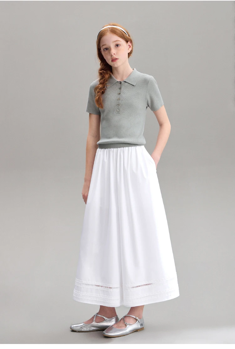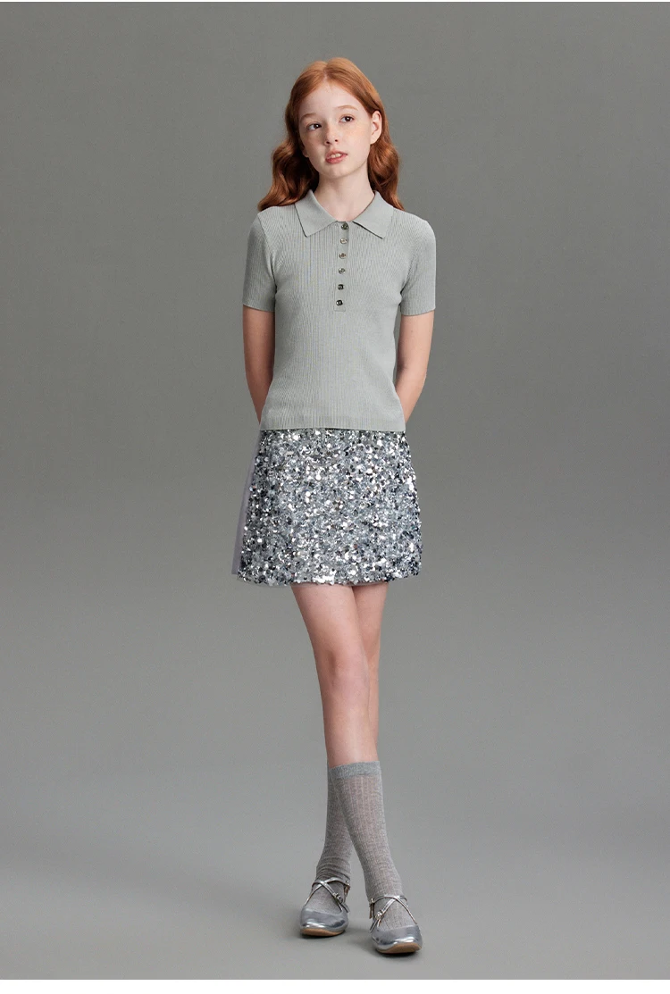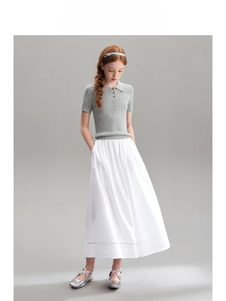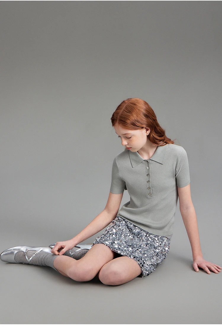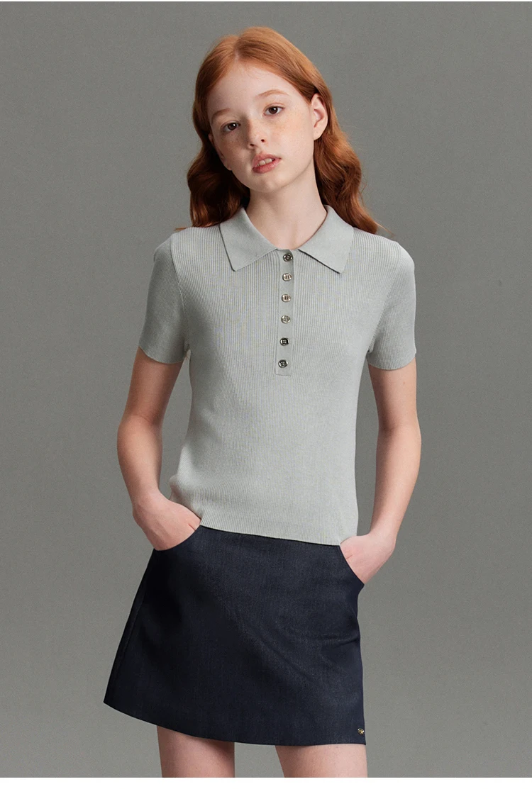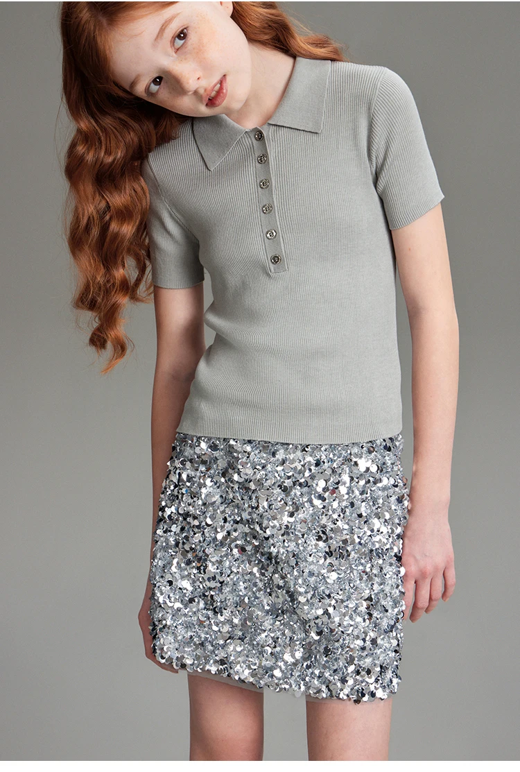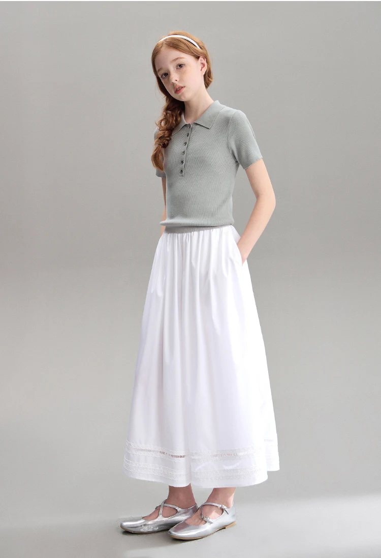 Ellekids Slim Fit ort Sve Ne Knitwear for Girls Summer New Sle Children’s Clothing Ry Cotton Blend Lightweight