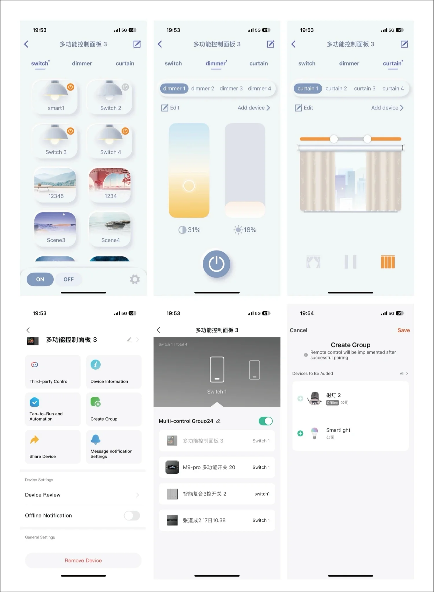 F3Pro Tuya Smart ZigBee wall switch, home automation central control panel, curtain and light scene touch switch.