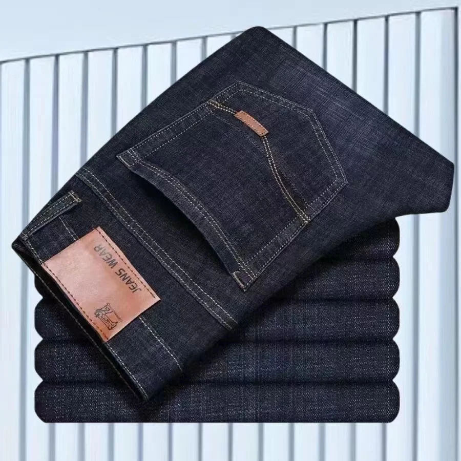 Fashion European American Style Stretch Men Jeans Luxury Men’s Denim Pants Slim Straight Deep Blue Gentleman Size 28-38 Slacks