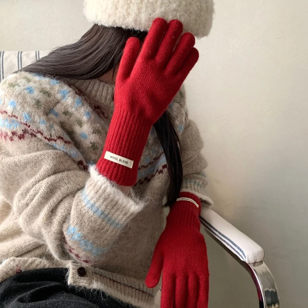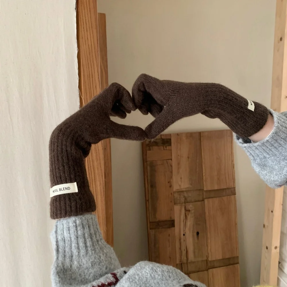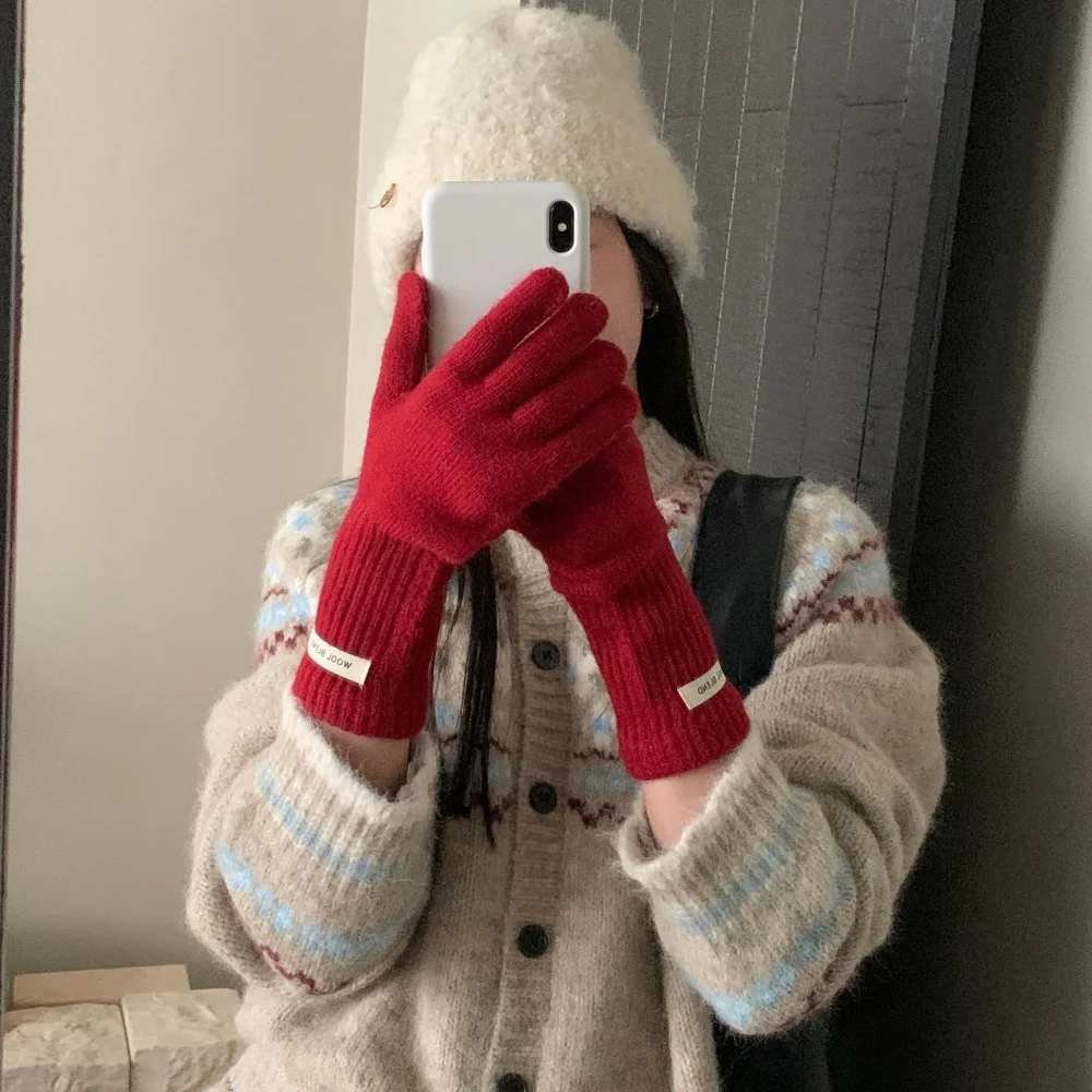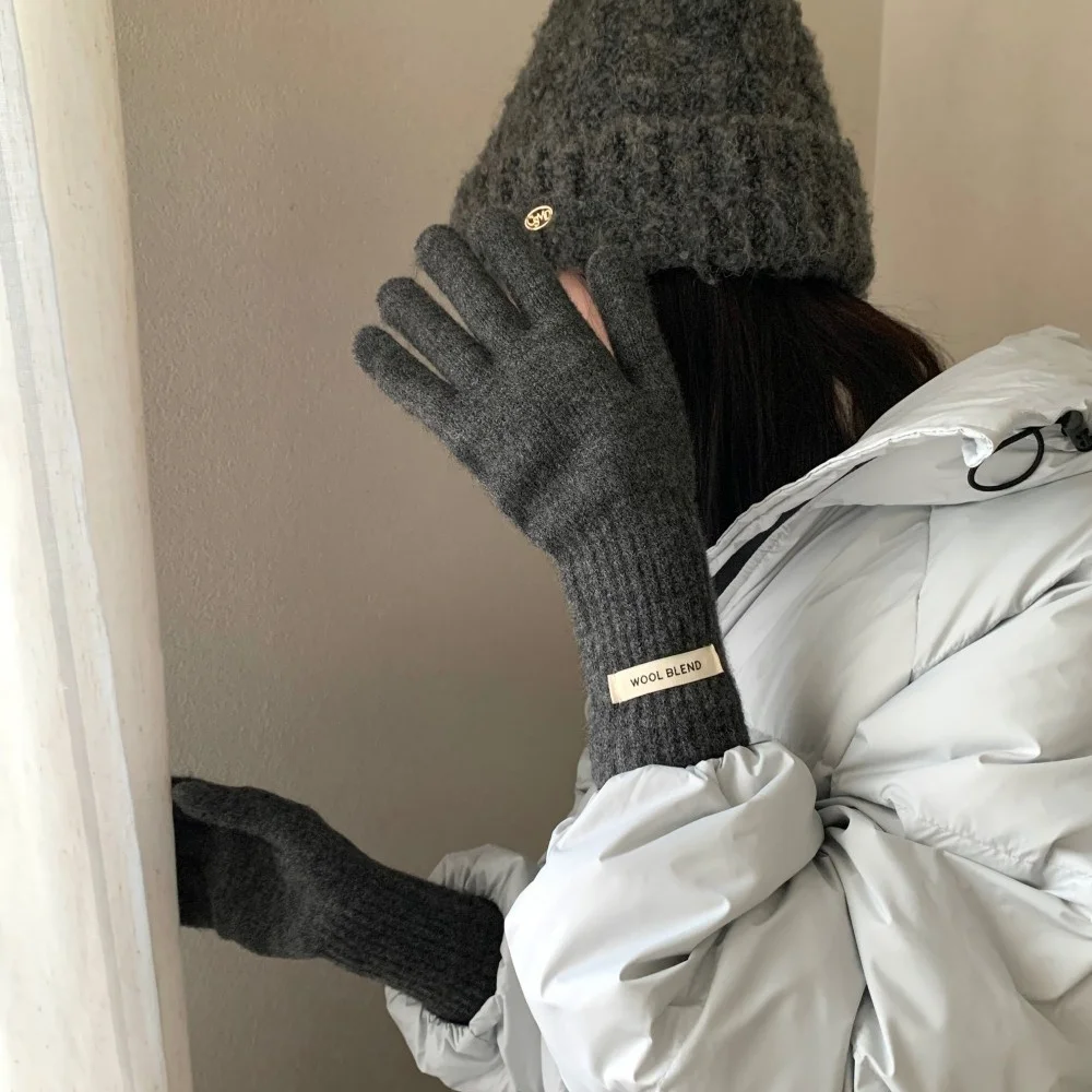 Fashion Solid Color Touch Screen Knitted Gloves Women Winter Gloves Warm Gloves Solid Work Gloves Harajuku Mittens For Women
