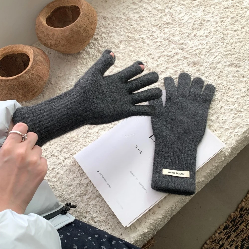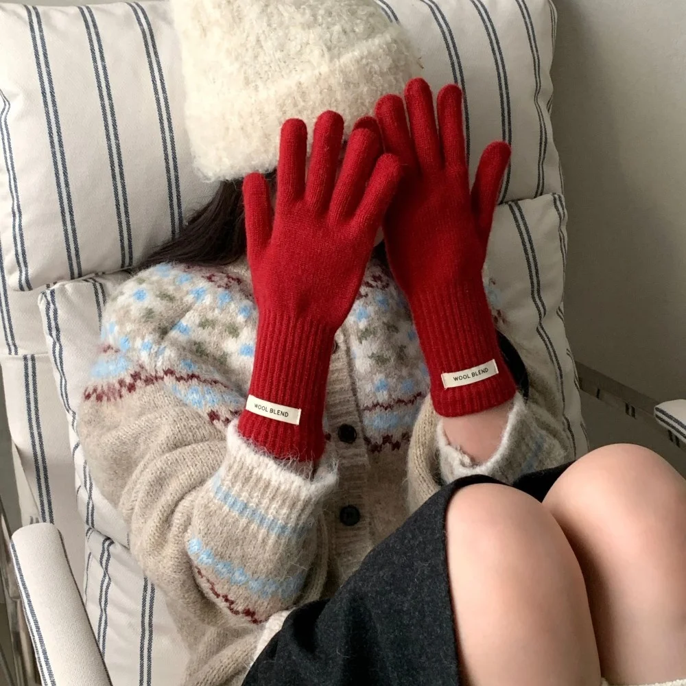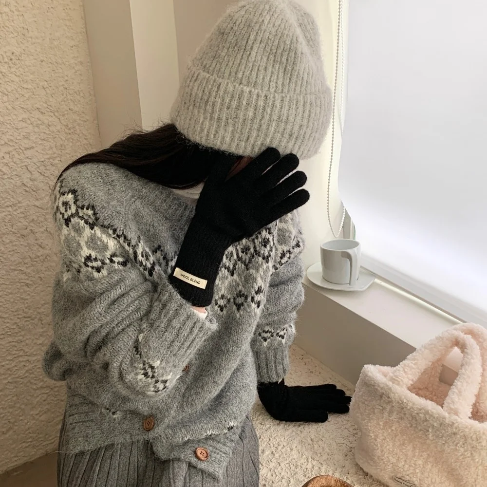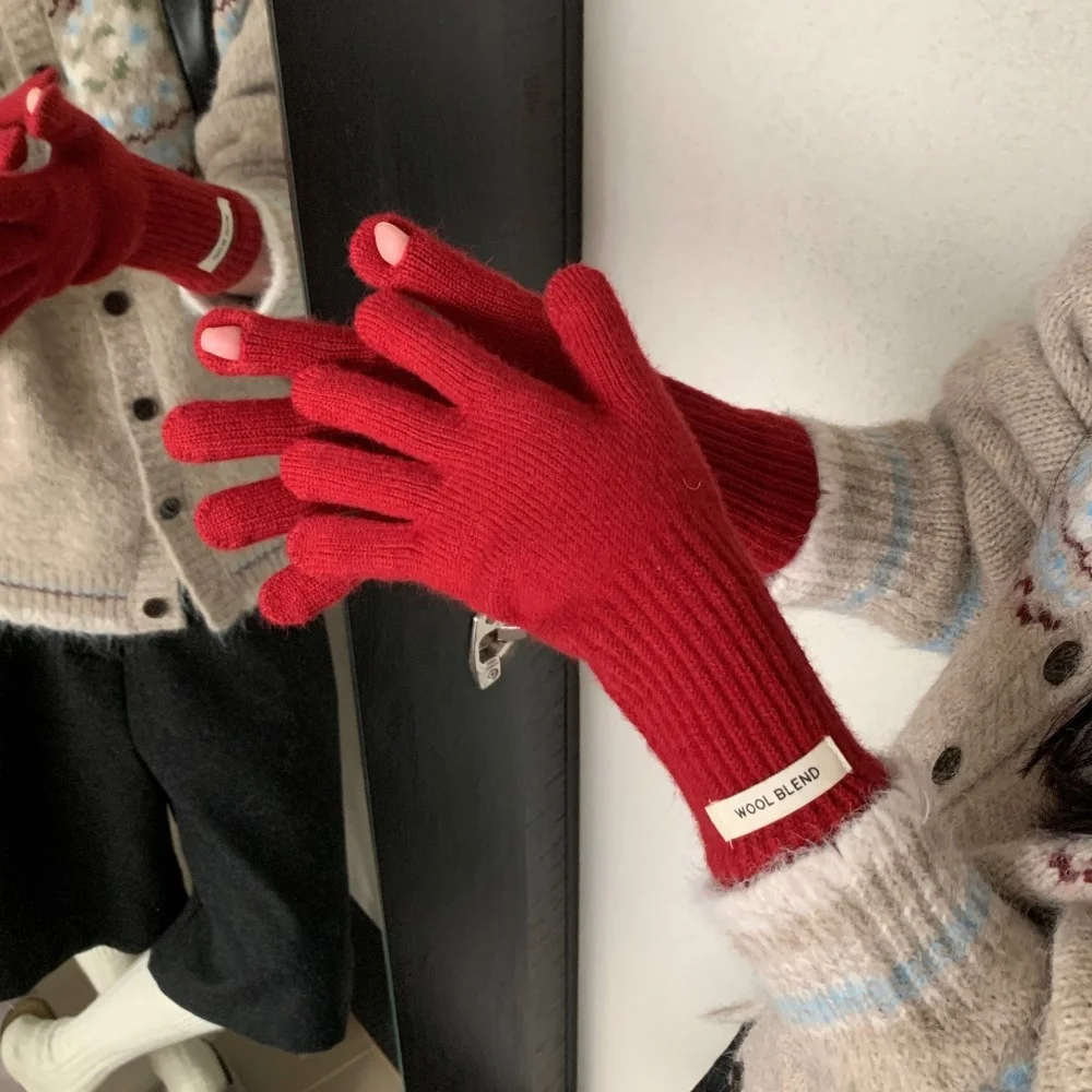 Fashion Solid Color Touch Screen Knitted Gloves Women Winter Gloves Warm Gloves Solid Work Gloves Harajuku Mittens For Women