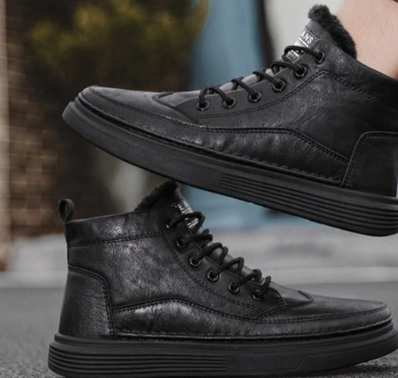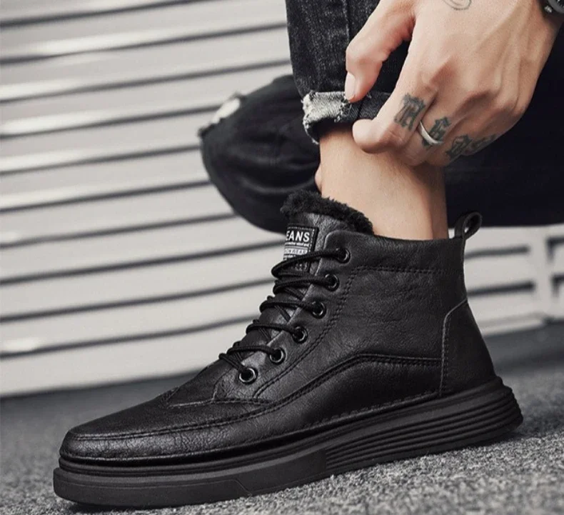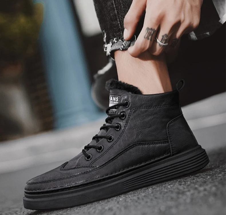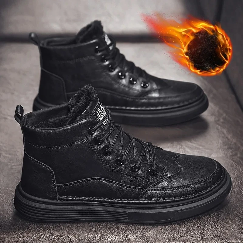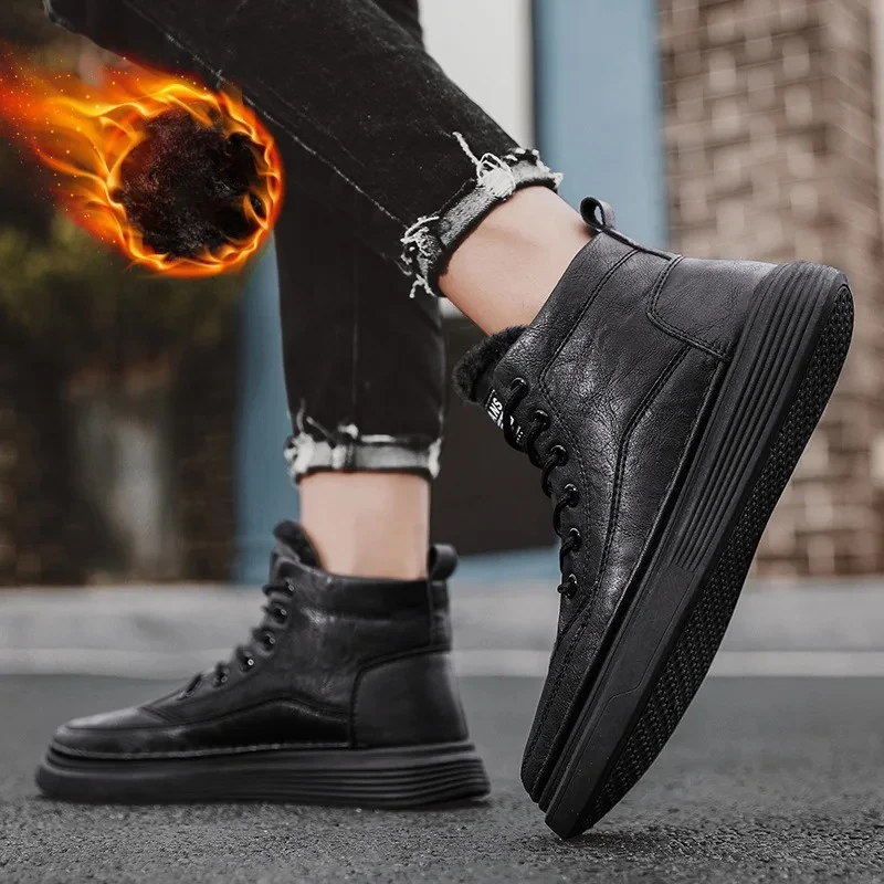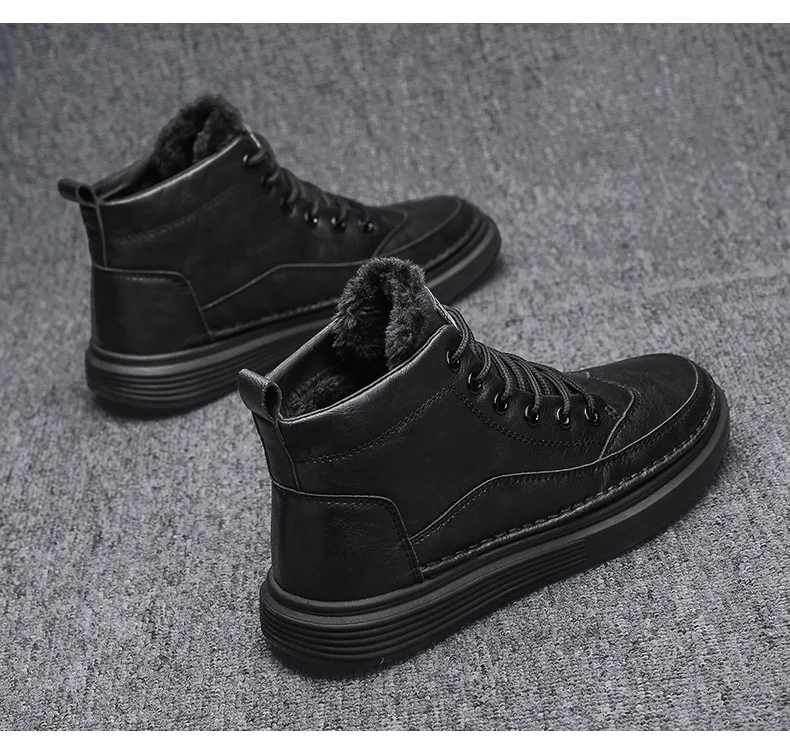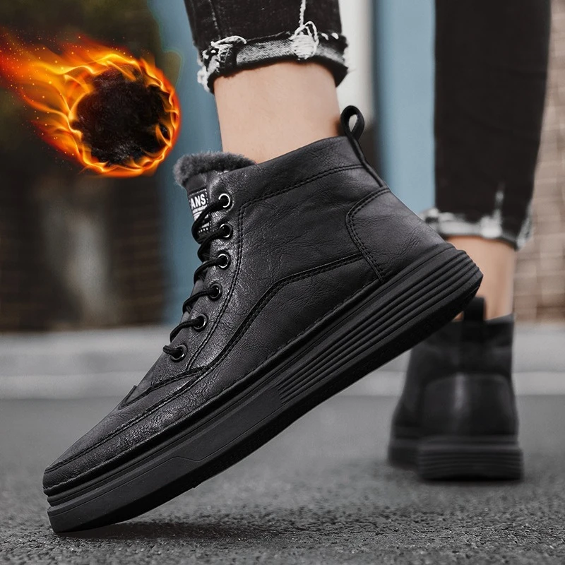 Fashion winter plush thick high top men’s cotton shoes versatile warm men’s snow boots leather boots
