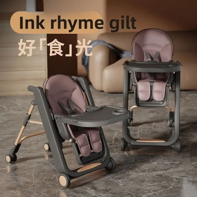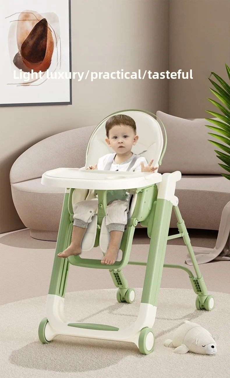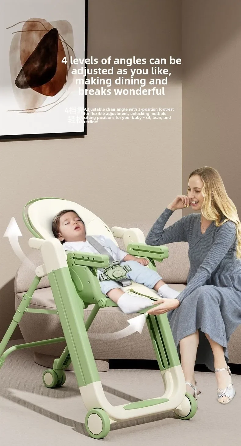 Foldable Baby High Chair Adjustable Toddler Feeding Seat Multifunctional Kids Dining Chair with Recline Footrest for Home Use