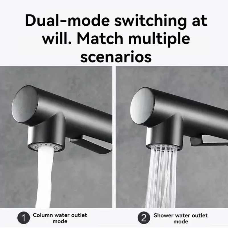Free Shipping Black Pull Out Kitchen Sink Faucet Two Model Stream Sprayer Nozzle Stainless Steel Hot Cold Wate Mixer Tap Deck