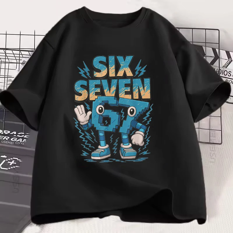 Funny Six Seven 67 Brainrot Print Short Sleeve T Shirt Men Women Fashion Gaming Meme T-Shirt Y2k Casual Tees Tops for Boys Girls
