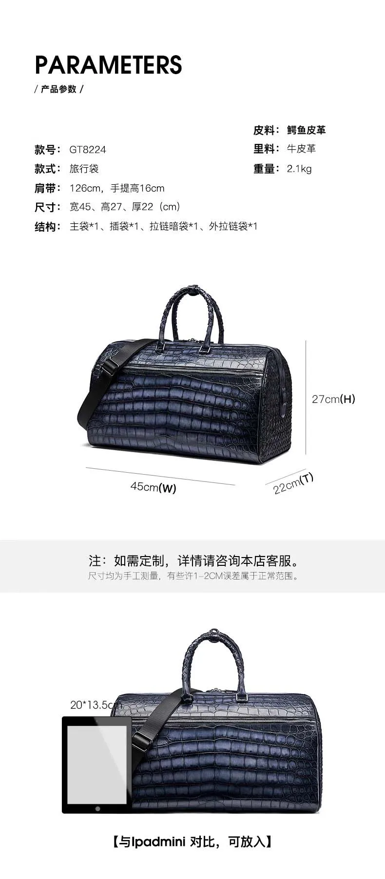 gete Brush crocodile handbag Travel Bag male Large capacity Luggage bag Men male travel Travel Bag