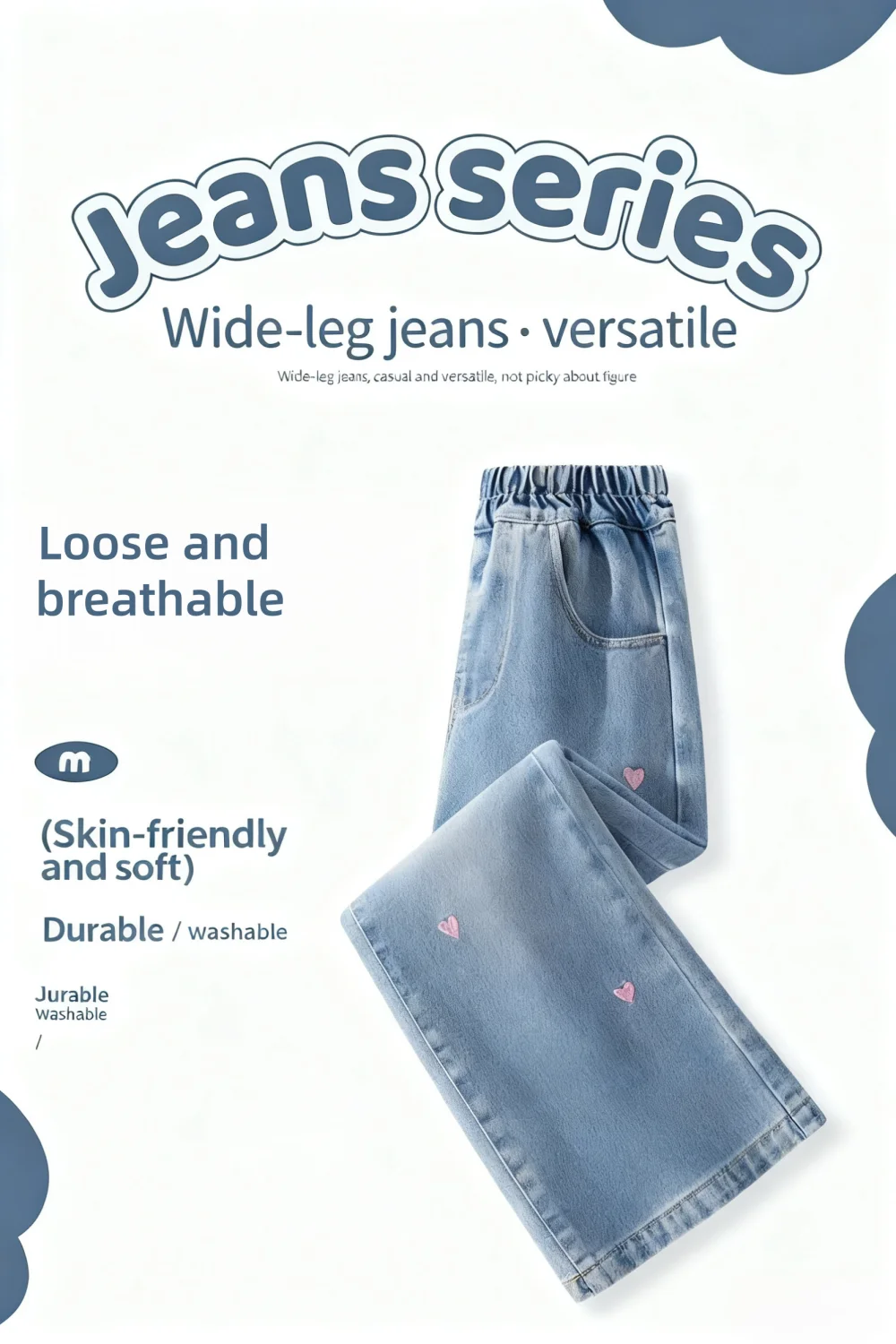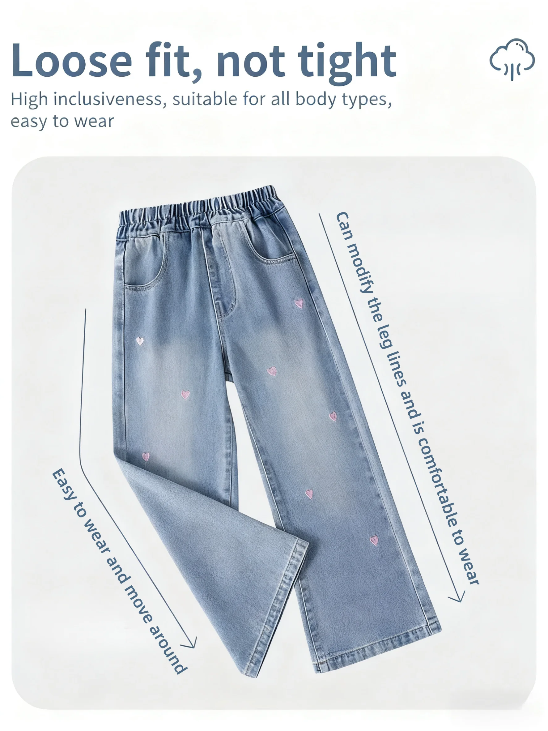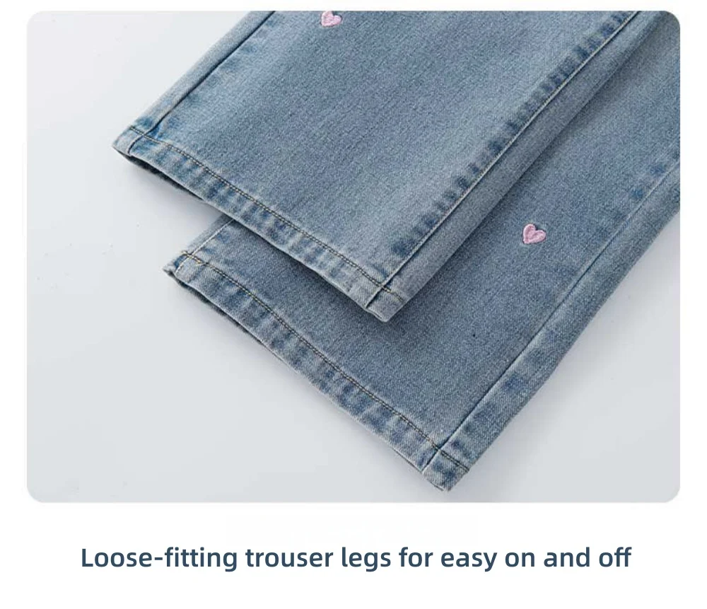 Watch your darling daughter blossom in these charming heart-embroidery jeans! 🤗 Featuring a flattering bootcut design and delicate heart details, these durable denim pants combine comfort with style for the perfect spring and autumn look!